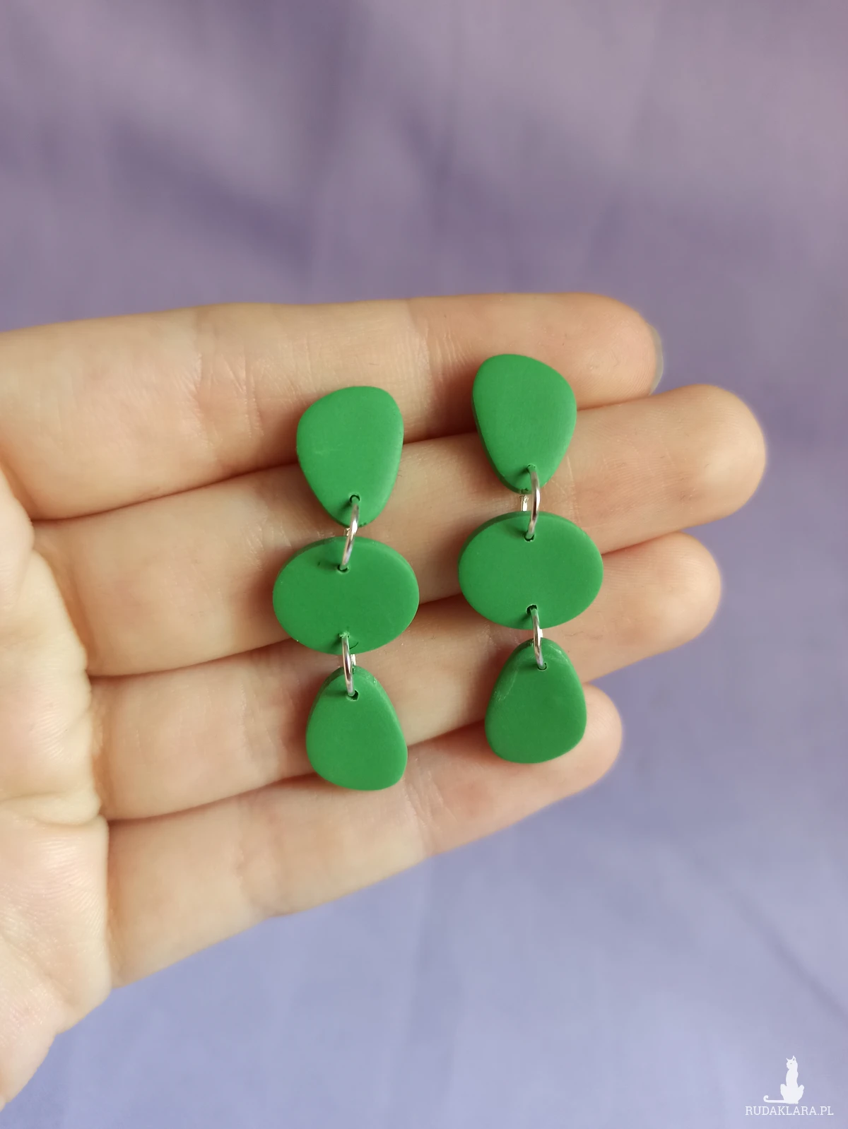 Kolczyki sztyfty w kształcie zielonych łańcuszków przypominających kamienie