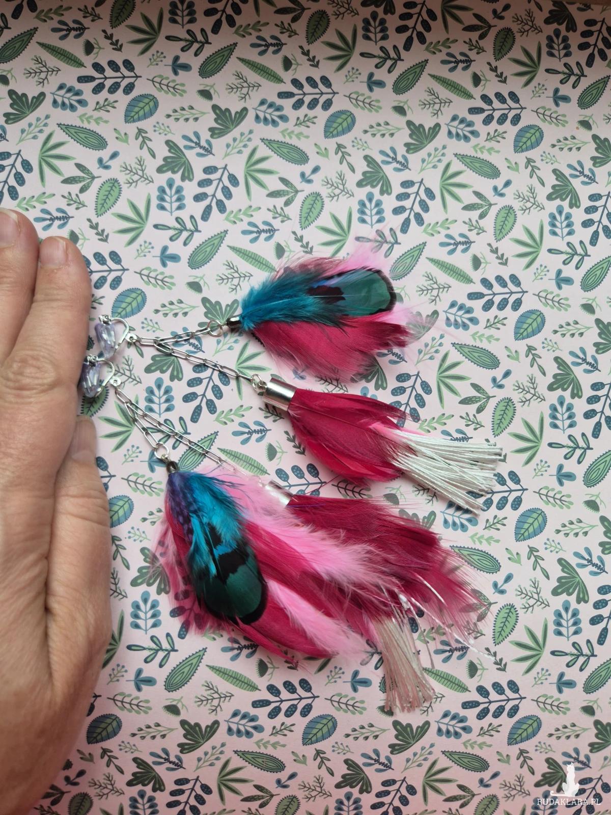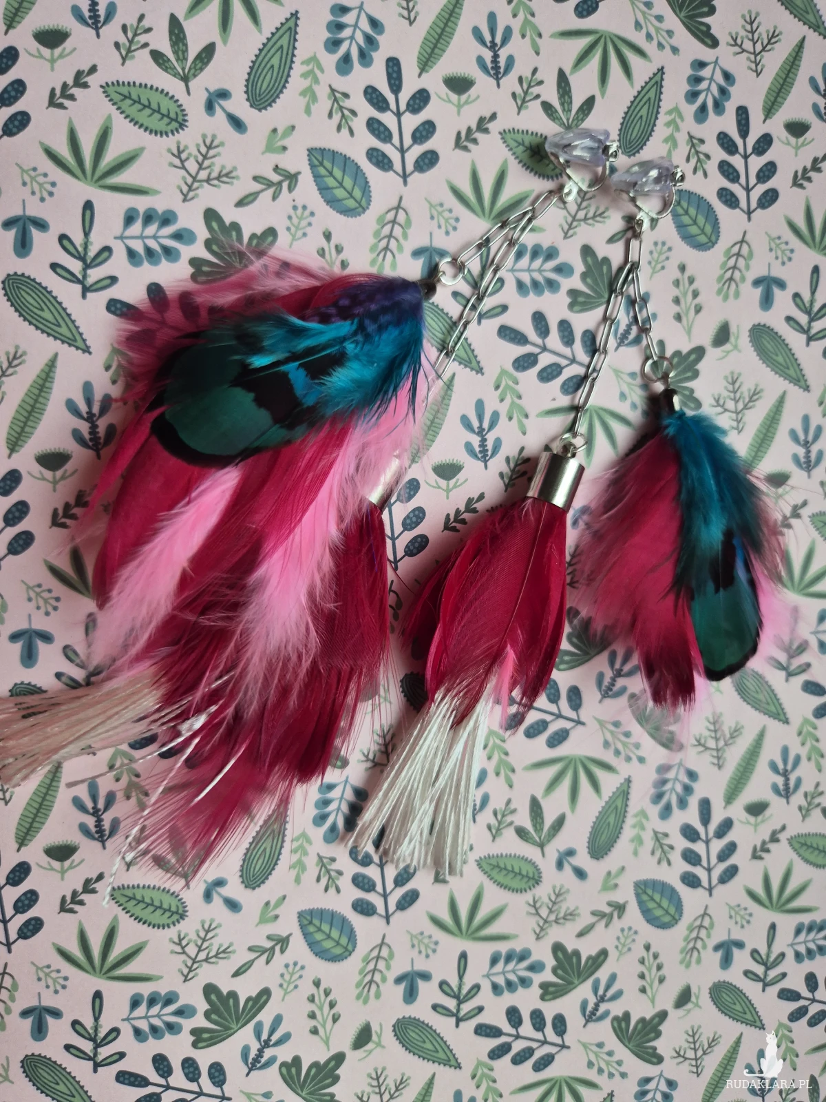 Klipsy długie pióra kolorowe bardzo stylowe polecam zwracają uwagę duże leciutkie cudne Box X1