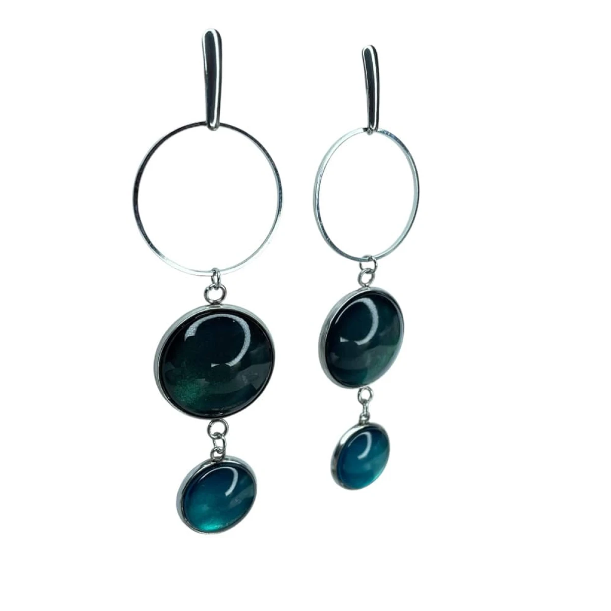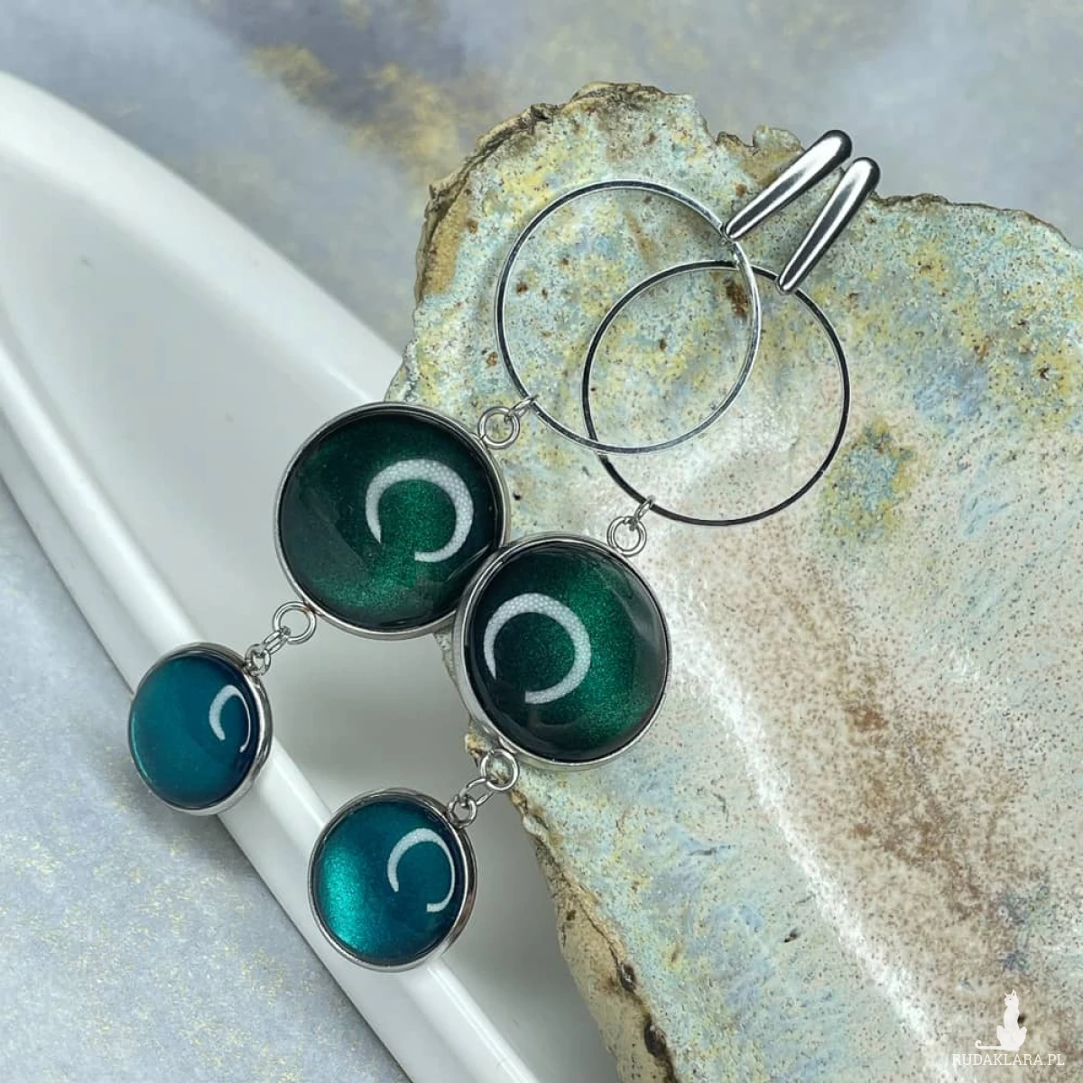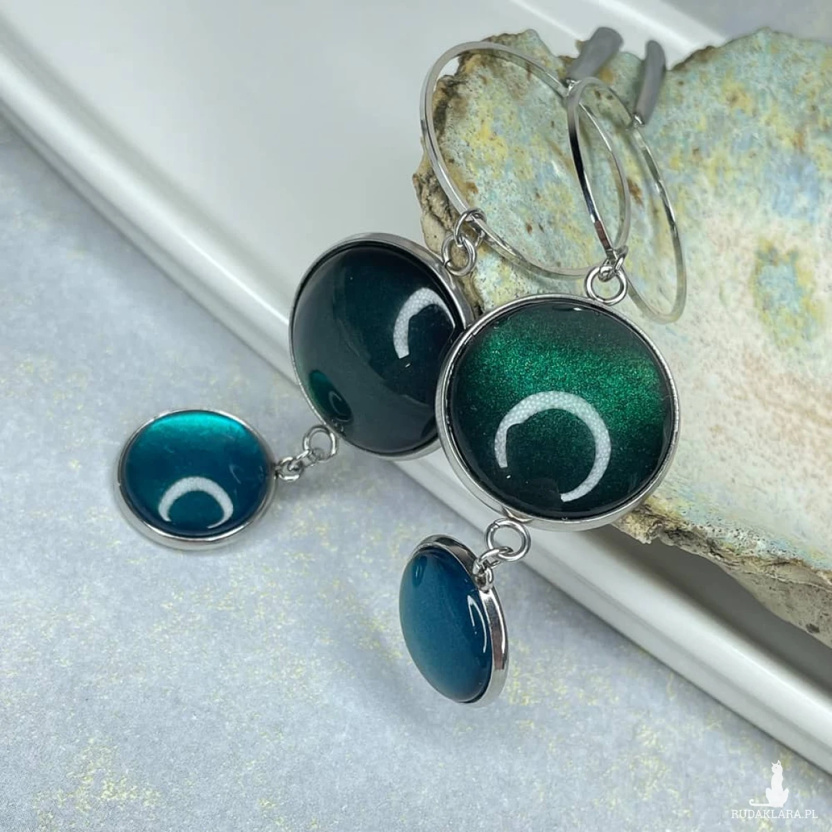Te pełne blasku kolczyki są częścią kolekcji “W blasku perłowego księżyca”. Kolczyki wykonane są z ręcznie malowanych kaboszonów umieszczonych w bazach ze stali szlachetnej. Szklane elementy zachwycają subtelnym, opalizującym blaskiem, który jest niczym odbicie księżyca na tafli wody. Kolczyki mienią się w świetle, przyciągając wzrok i dodają elegancji każdej stylizacji. Ten dodatek jest idealny dla osób ceniących sobie wyrafinowaną i ponadczasową biżuterię. Materiał: stal szlachetna, malowane ręcznie szkło Wykończenie: połysk Długość kolczyków: 8,5 cm Średnica kaboszonu: 20; 16 mm Waga pary kolczyków: ok 13,6 g SKU: e4/m37, kolory: 68, 17 Jak dobierać komplety? Kolory na zdjęciach mogą się różnić ze względów technicznych. Aby dobrać identyczny odcień, zwróć uwagę na numer SKU produktu. Pierwsza część to numer modelu, a numery po “/” to kolor, np. /17 oznacza morski perłowy. Produkty z tym samym SKU po "/" mają identyczny kolor. Dzięki temu możesz łatwo tworzyć komplety, mając pewność, że biżuteria jest w tym samym odcieniu. Stwórz własny komplet! Jeśli nie ma biżuterii w wybranym modelu lub kolorze którego szukasz, możesz ją zamówić indywidualnie. Wyślij do nas maila z nazwą, numerem modelu i kolorem, a my w miarę możliwości wykonamy biżuterię na zamówienie. Termin realizacji ustalamy indywidualnie. Biżuteria zostanie elegancko zapakowana. W przypadku zakupu kompletu, biżuteria zostanie zapakowana razem. Kolory na zdjęciach mogą delikatnie różnić się od rzeczywistych.