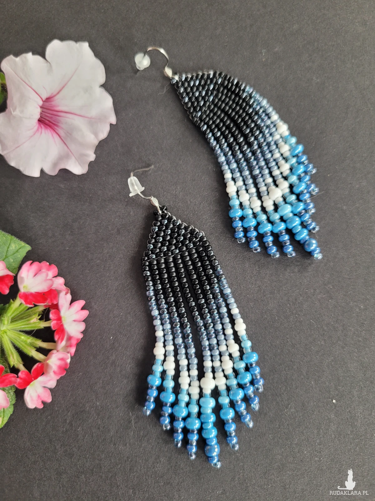 Unikatowe, artystyczne kolczyki z efektem cieniowania ręcznie robione z koralików czeskich Preciosa.