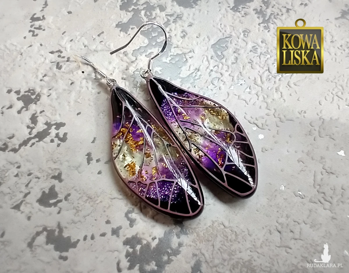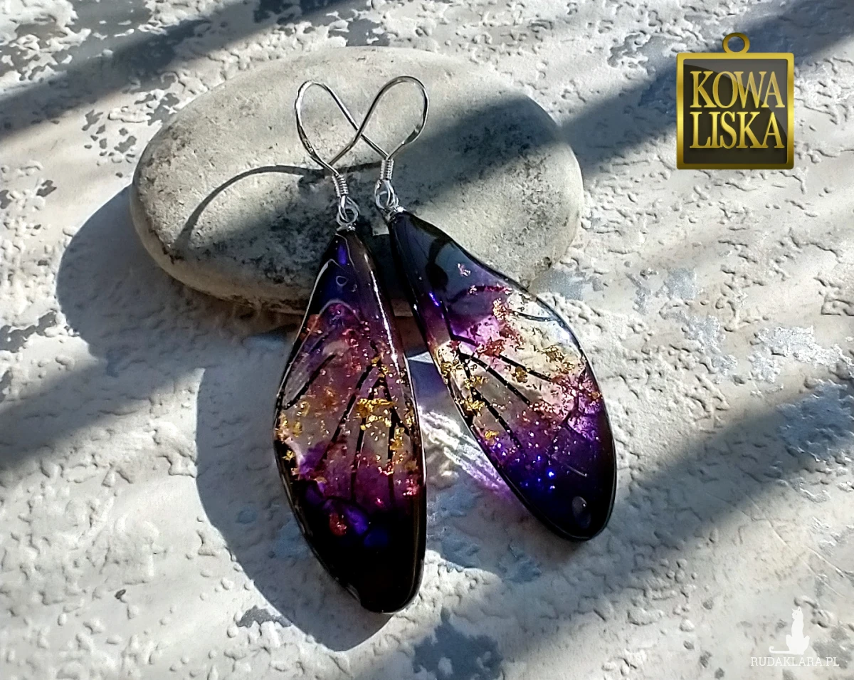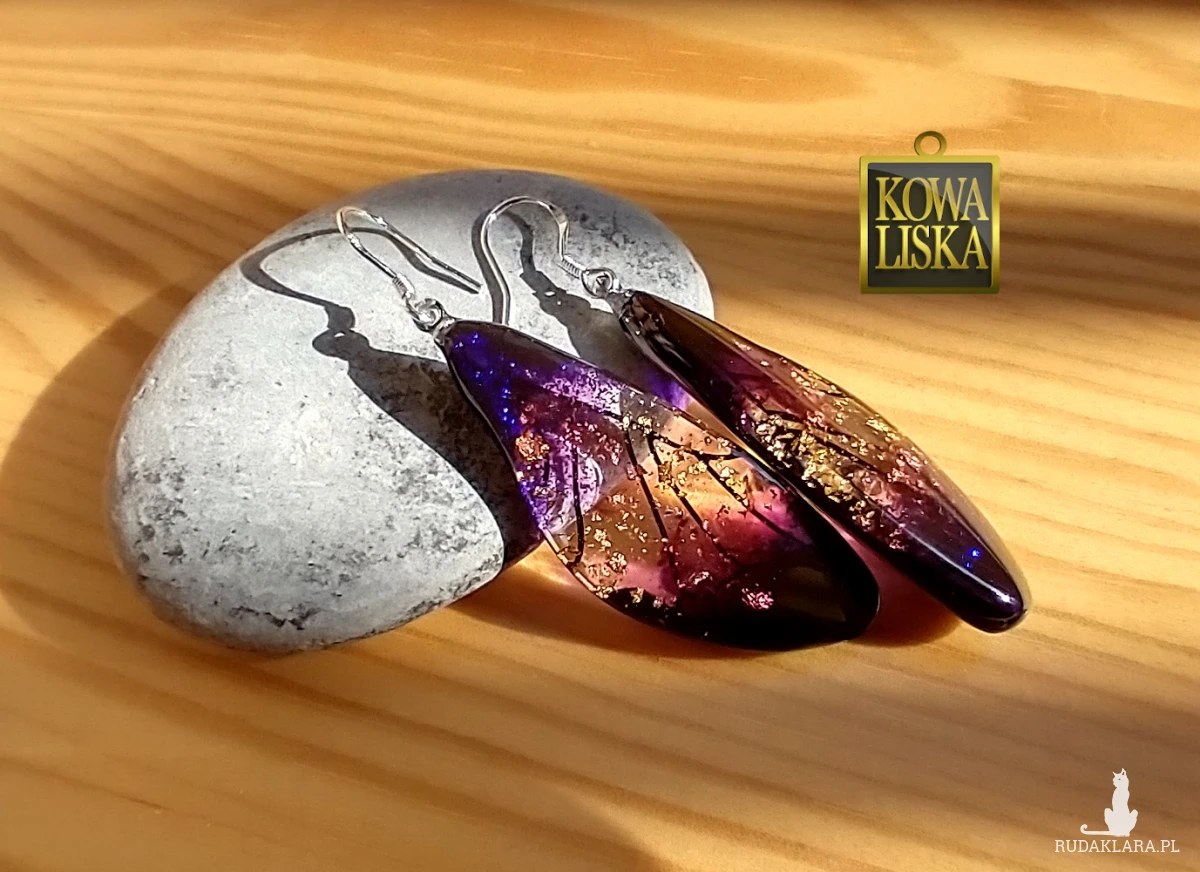 Lśniące fioletowo-złotym blaskiem skrzydła motyla przepięknie podkreślą Twoją urodę, zarówno w ciepłe, słoneczne dni, jak i podczas wieczornego wyjścia. Złote drobinki mienią się w słońcu... Skuś się...