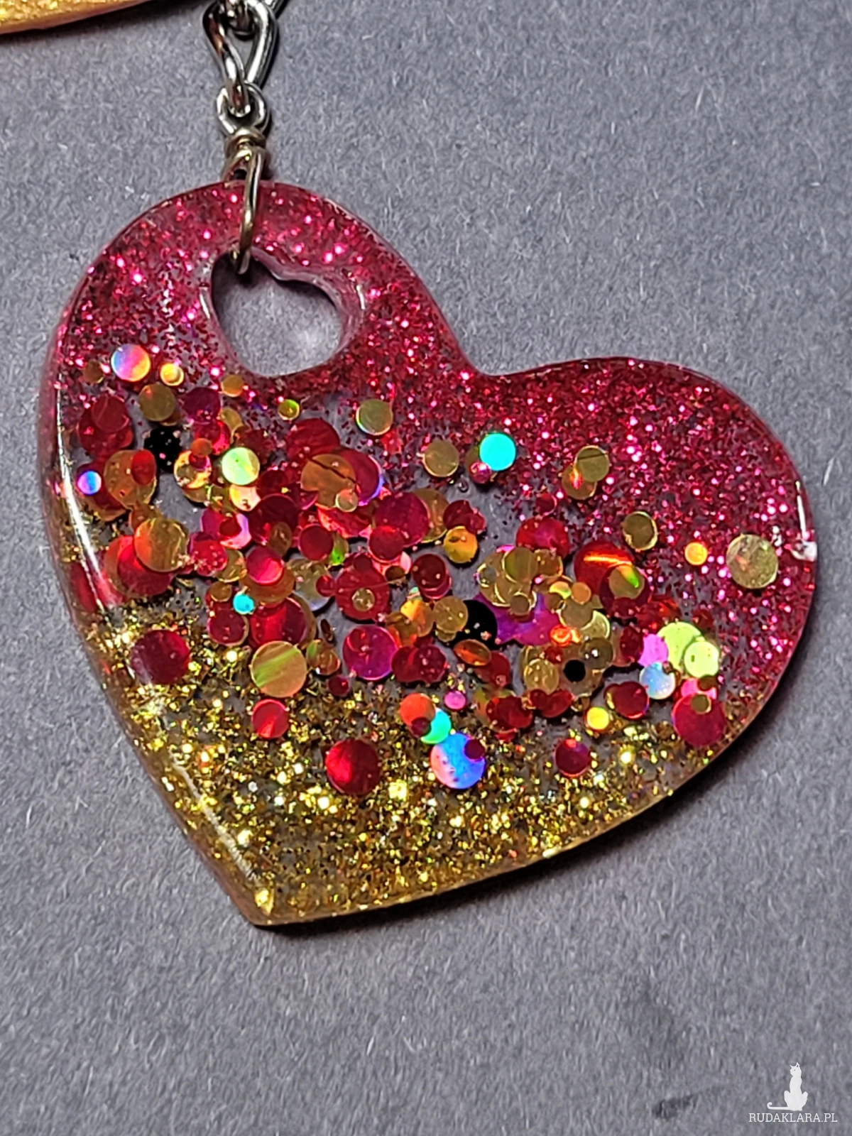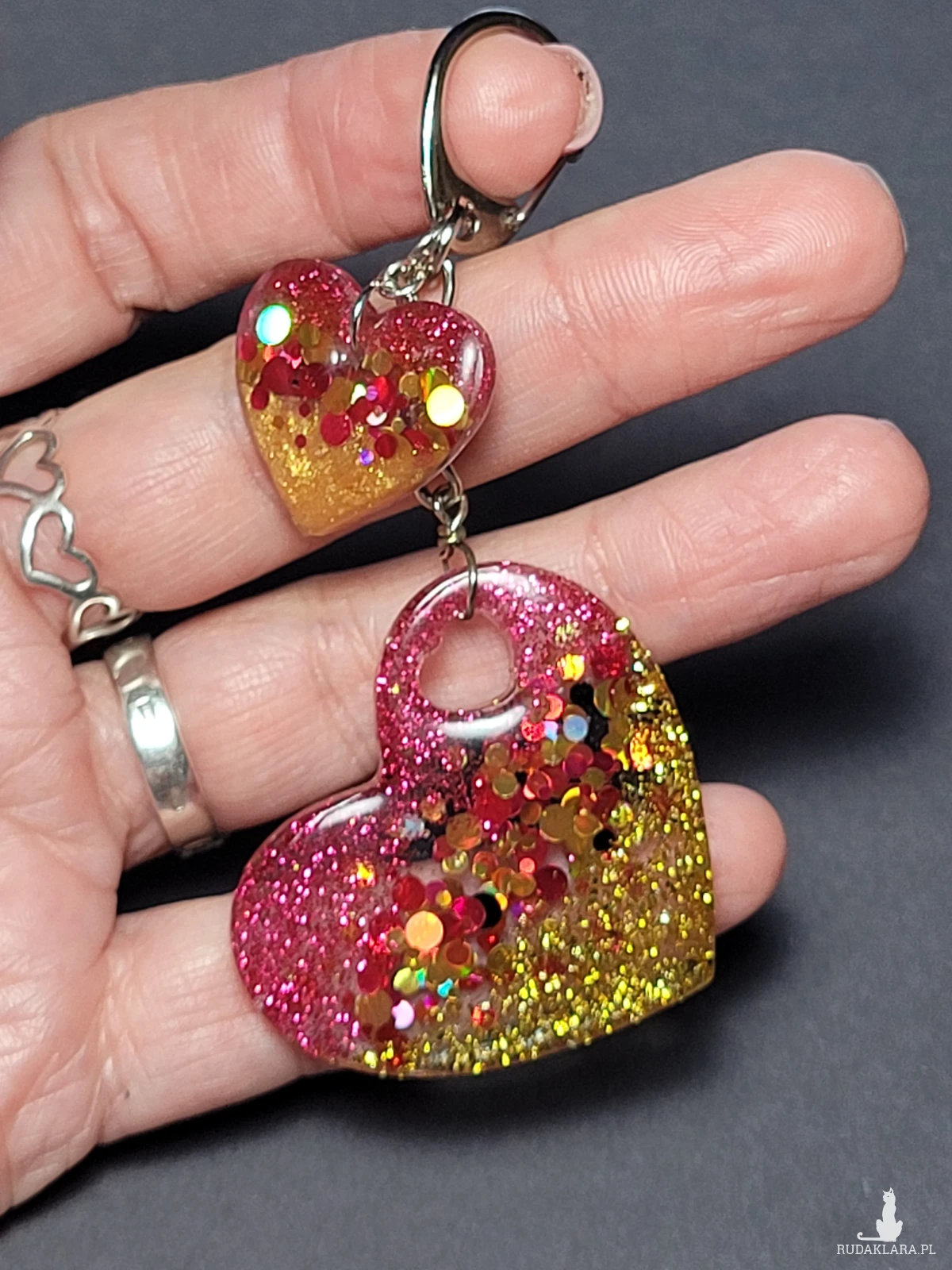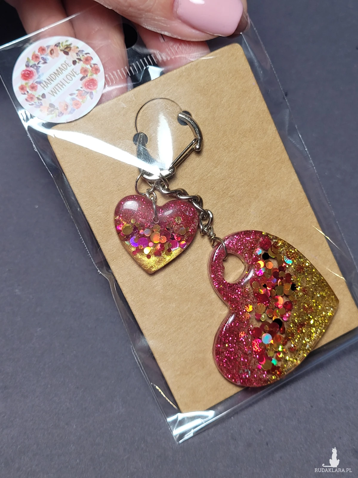 • Brelok "Serce Różowo-Złote" z żywicy to uroczy dodatek do kluczy lub torebki.