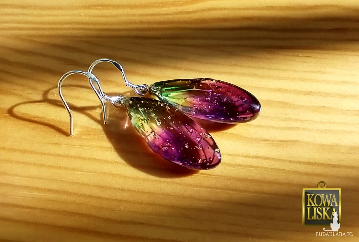Śliczne, nieduże kolczyki imitujące owadzie skrzydełka.