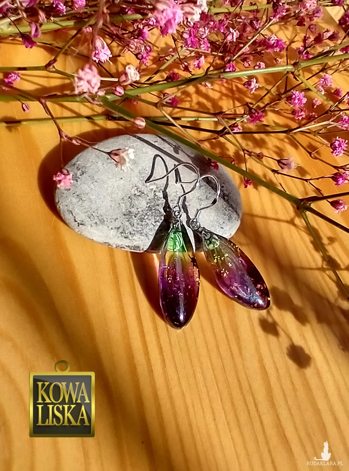 Krystaliczna przejrzystość i ciekawe połączenie kolorów lila i delikatnej zieleni, jasne, lekko zaznaczone żyłowania i niewielki rozmiar gwarantują przyjemność i i komfort noszenia.