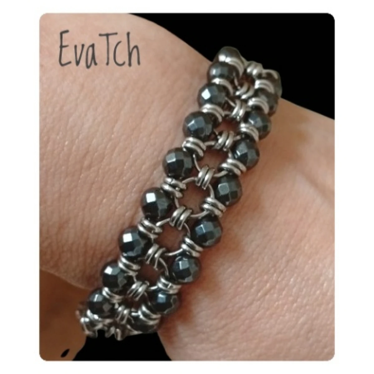 Bransoletka handmade ze stali szlachetnej z hematytem, wykonana techniką chainmaille
