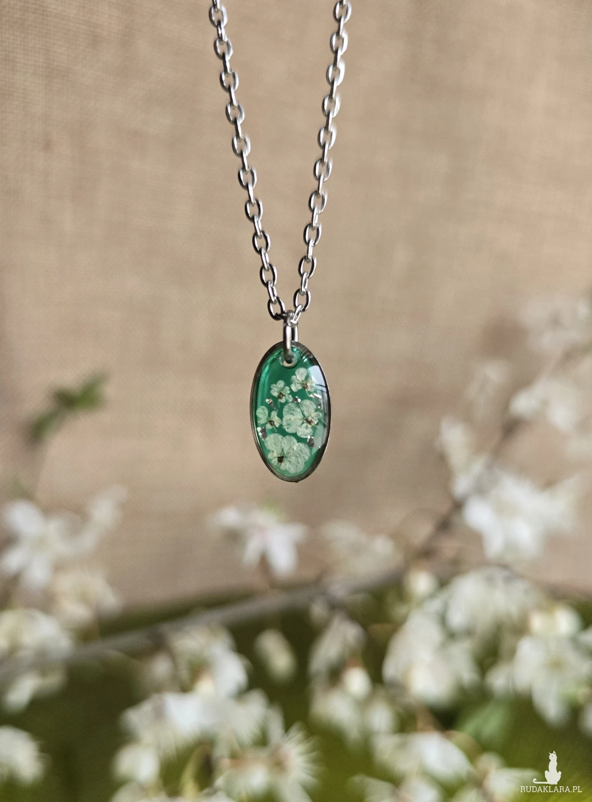Oferuję Państwu unikalną biżuterię. Zawieszka jest wykonana z suszonych kwiatów i żywicy epoksydowej. Biżuteria jest wspaniałym i oryginalnym prezentem na lata.