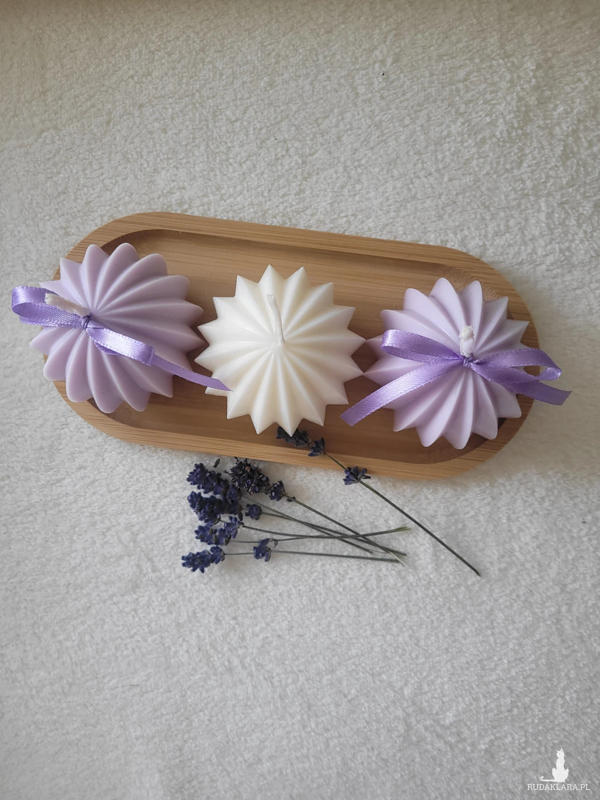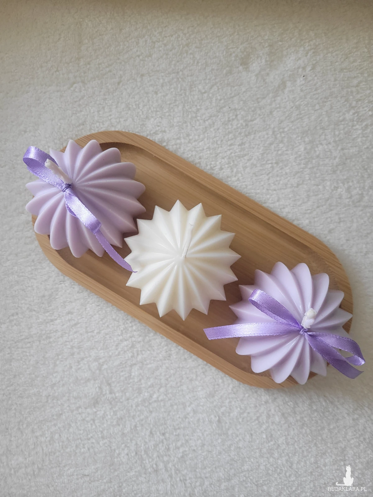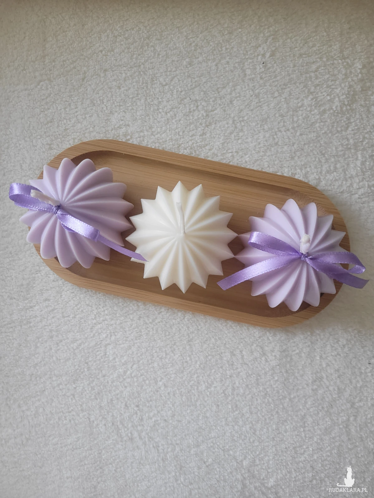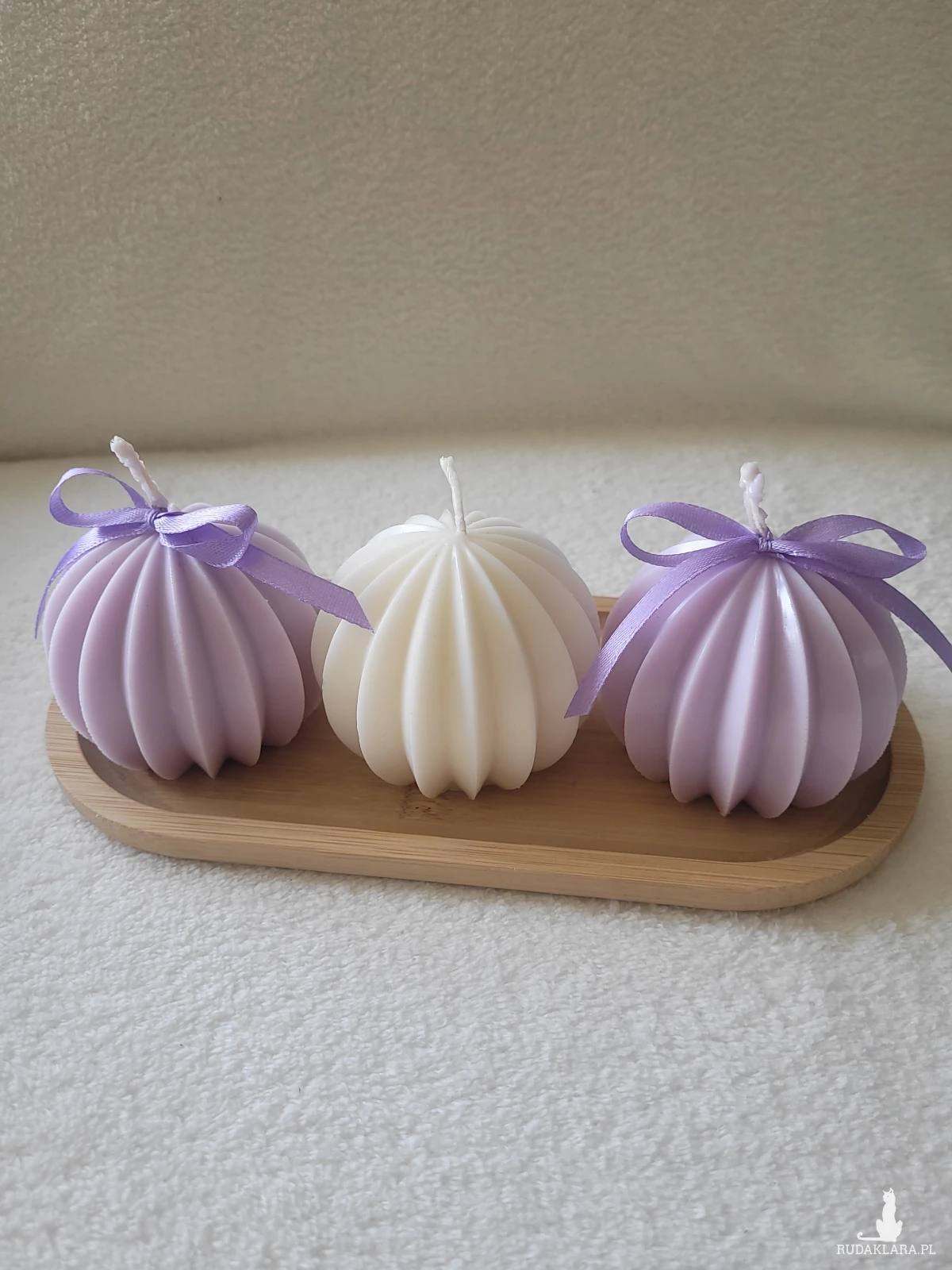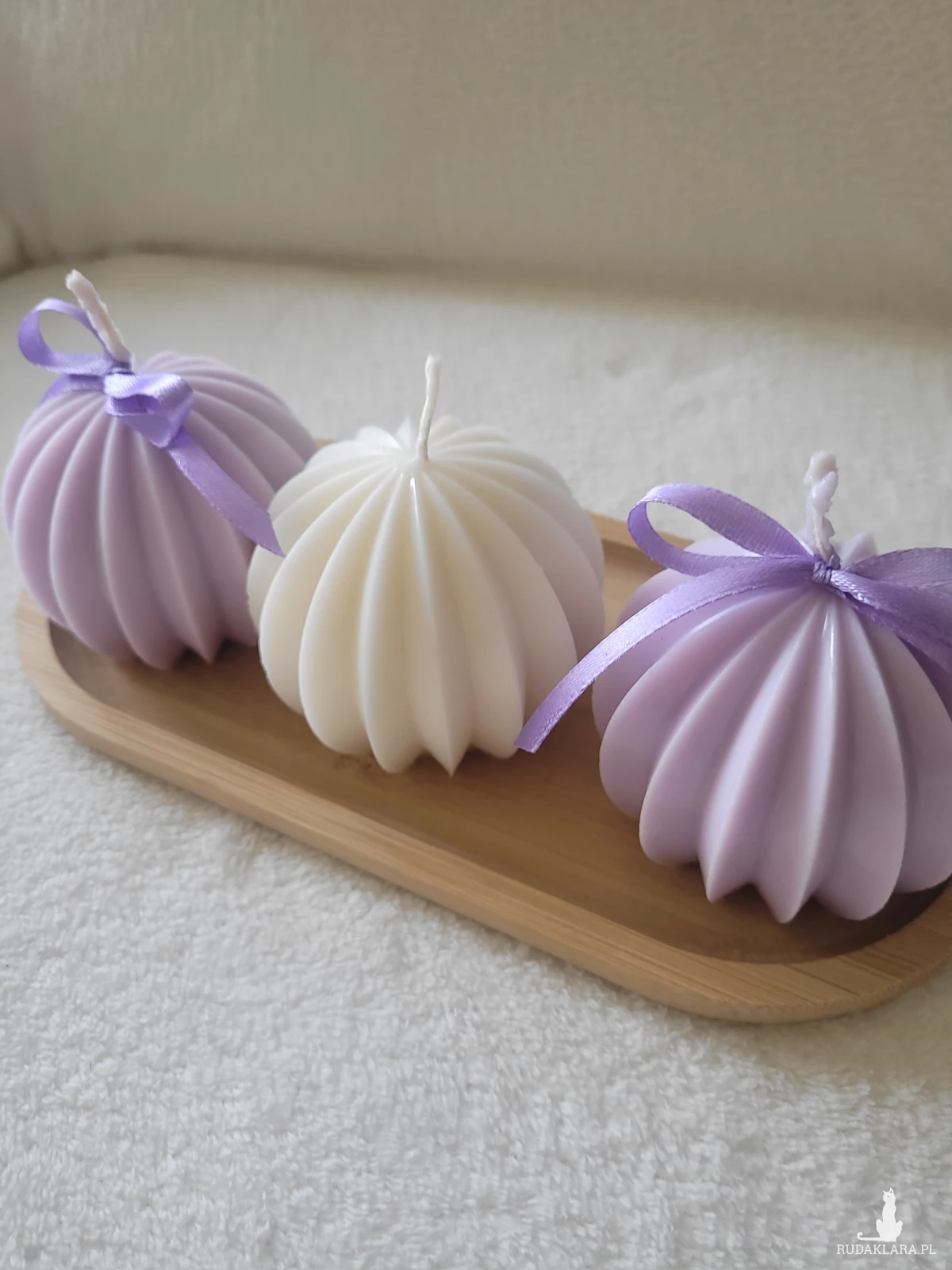 Zestaw upominkowy świec sojowych na drewnianej tacy z drewna .