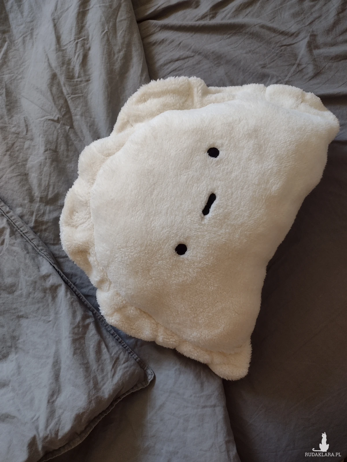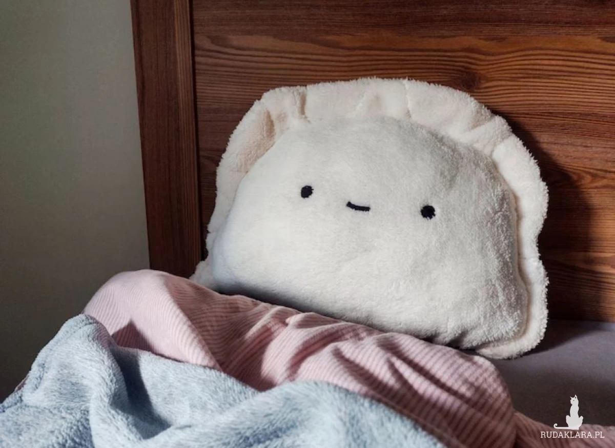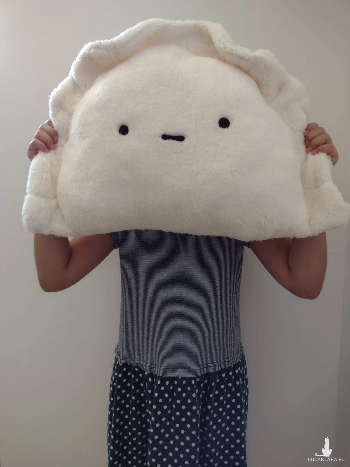 Pluszowy pieróg, duża poduszka pieroguszka, pierożek do kochania i tulenia. Świetny jako dekoracja nie tylko do pokoju dziecka. Uszyty z miękkiego niczym chmurka polaru Sherpa, wypełniony antyalergicznym puchem silikonowym. Oczy i buzia wykonane z naturalnego filcu.