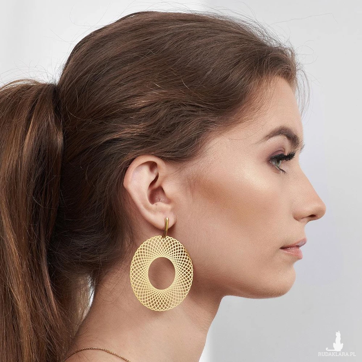 Jeśli szukasz biżuterii, która przyciąga wzrok i dodaje charakteru, a jednocześnie jest wygodna w noszeniu – sięgnij po duże ażurowe kolczyki w kształcie koła. Ich lekka forma sprawia, że możesz nosić je przez cały dzień bez uczucia dyskomfortu, a ażurowy wzór subtelnie odbija światło i dodaje stylizacji przestrzenności. To propozycja dla kobiet, które cenią nowoczesne, efektowne dodatki.