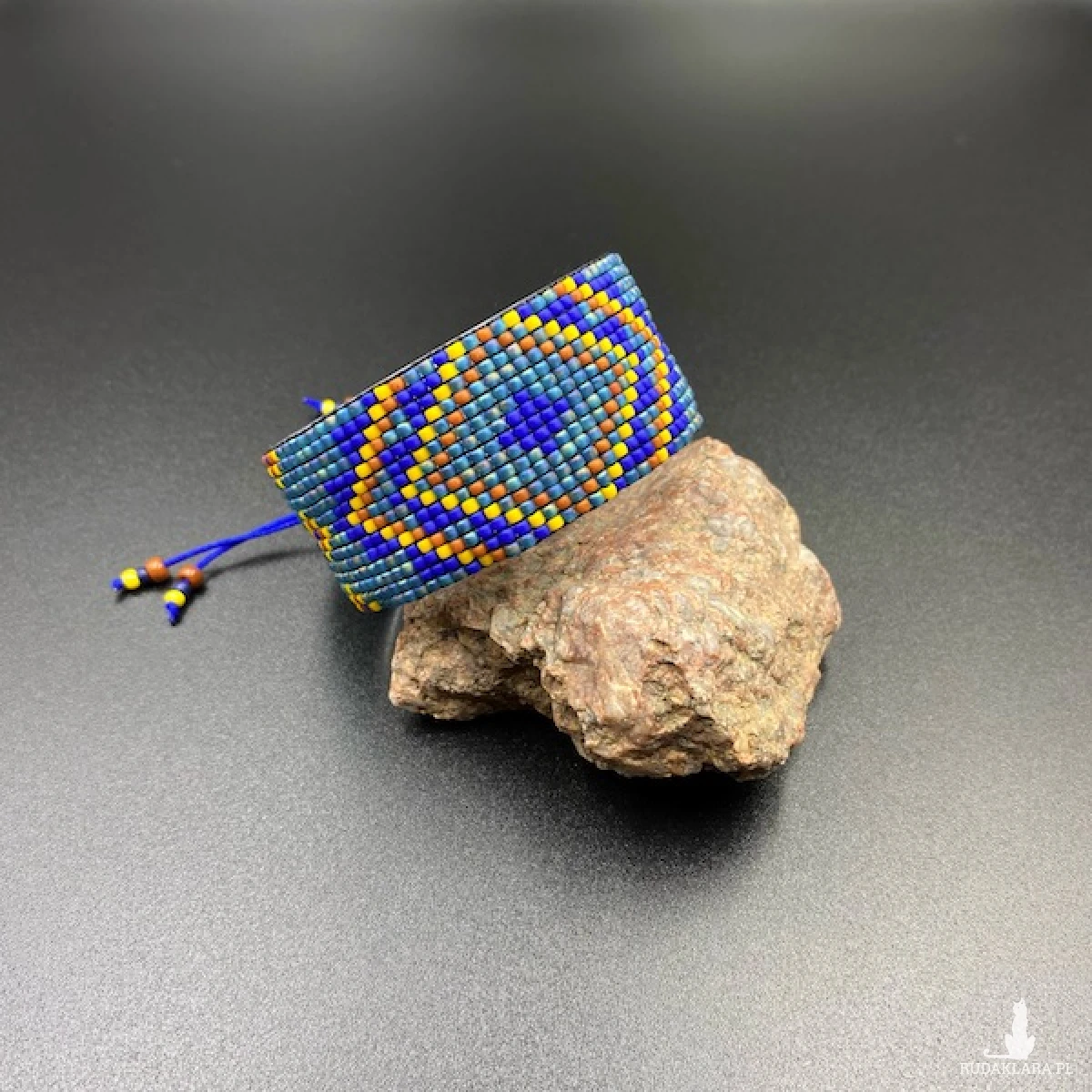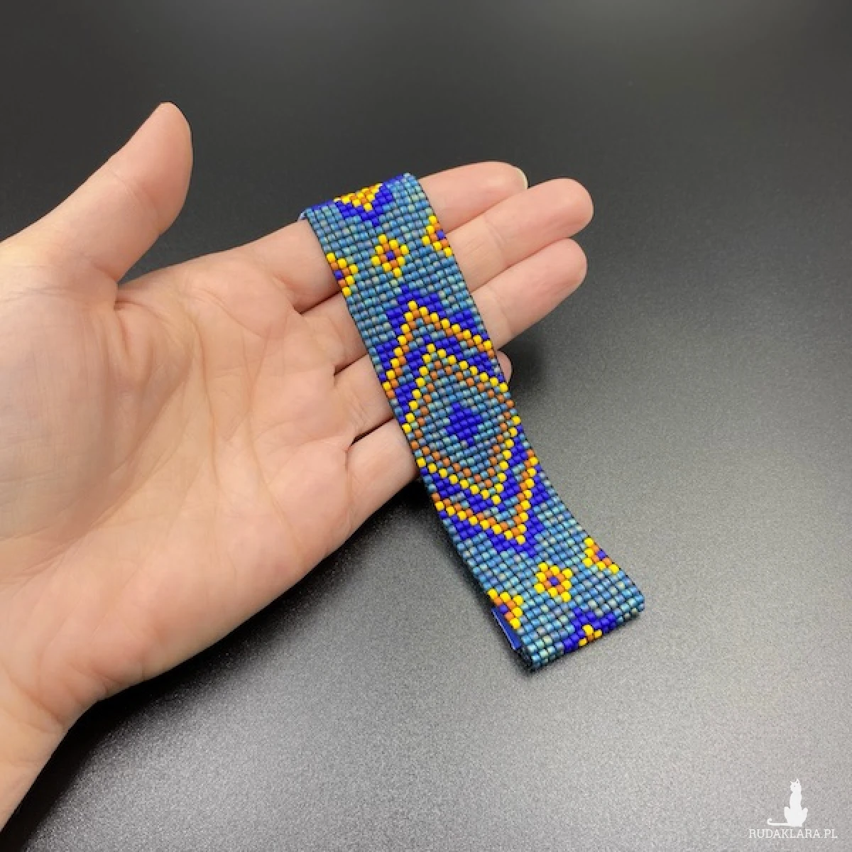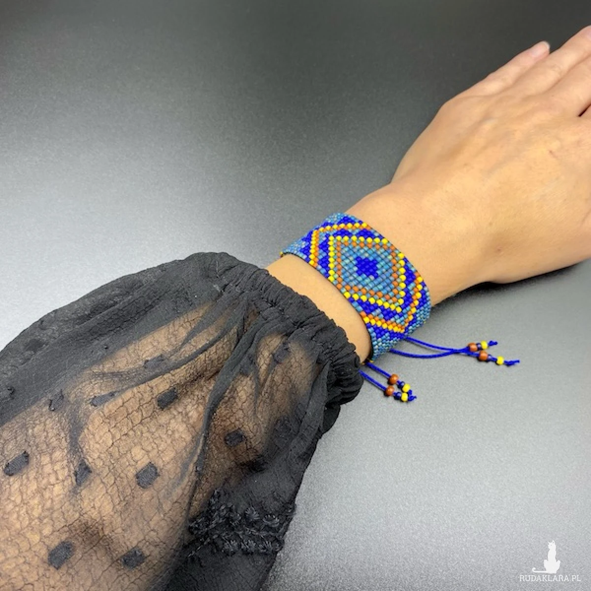 Bransoletka została utkana na krośnie z koralików Toho. Jest bardzo plastyczna i swobodnie układa się na nadgarstku.