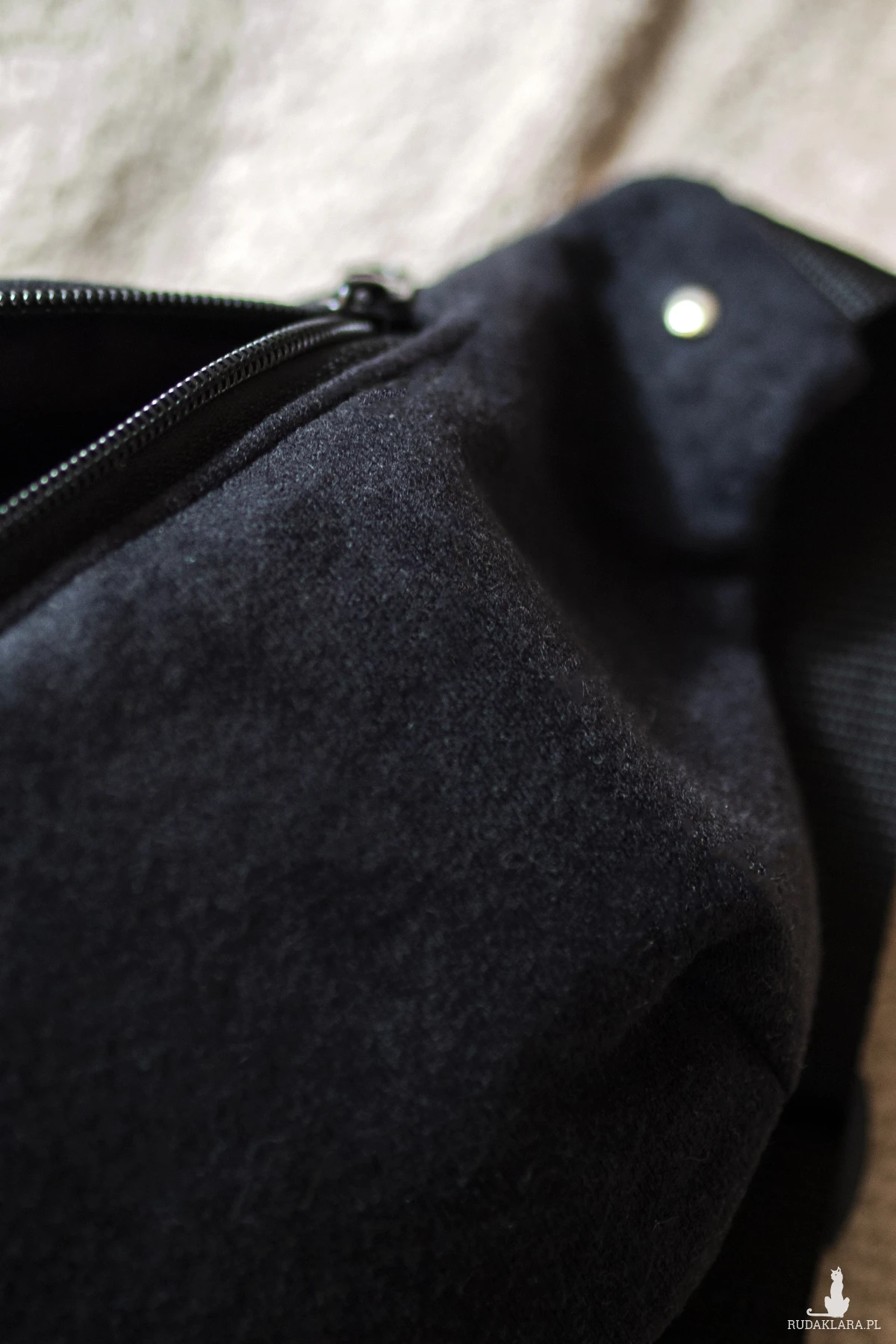 Duża nerka saszetka biodrowa wykonana z czarnej mikrofazy.