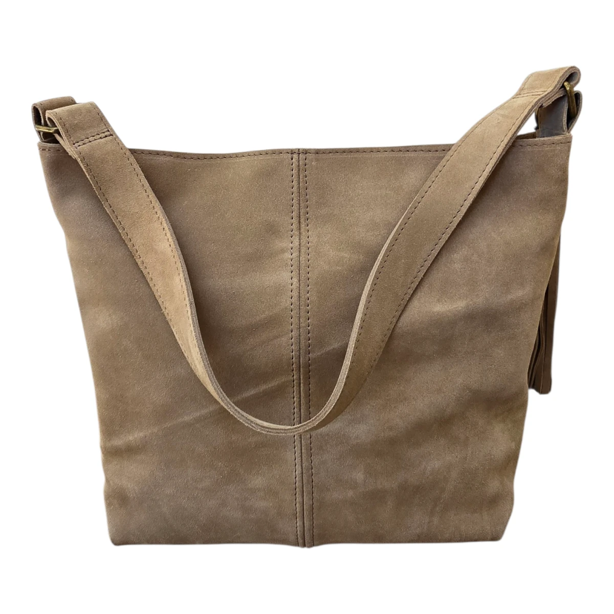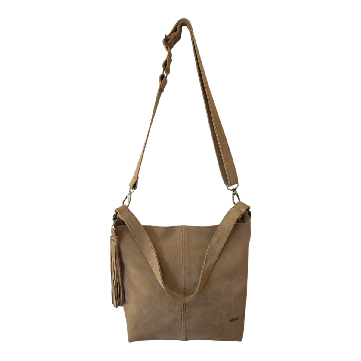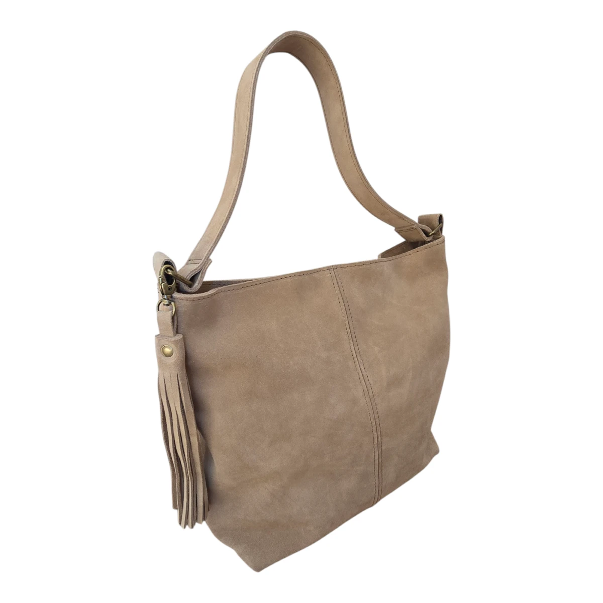 Wykonana z naturalnej włoskiej skóry zamszowej w oryginalnym kolorze piasku będzie idealnym uzupełnieniem letniego 'outfitu'. Brelok z chwostem oraz etui na karty GRATIS!!!