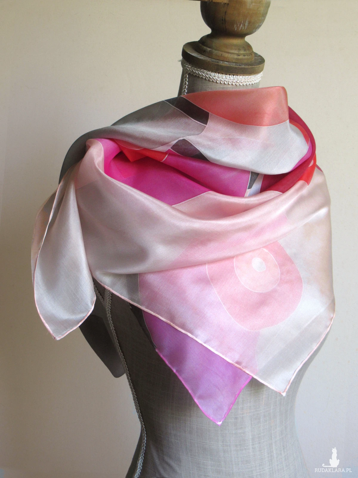 Duża Minimalistyczna chusta z naturalnego jedwabiu malowana ręcznie.