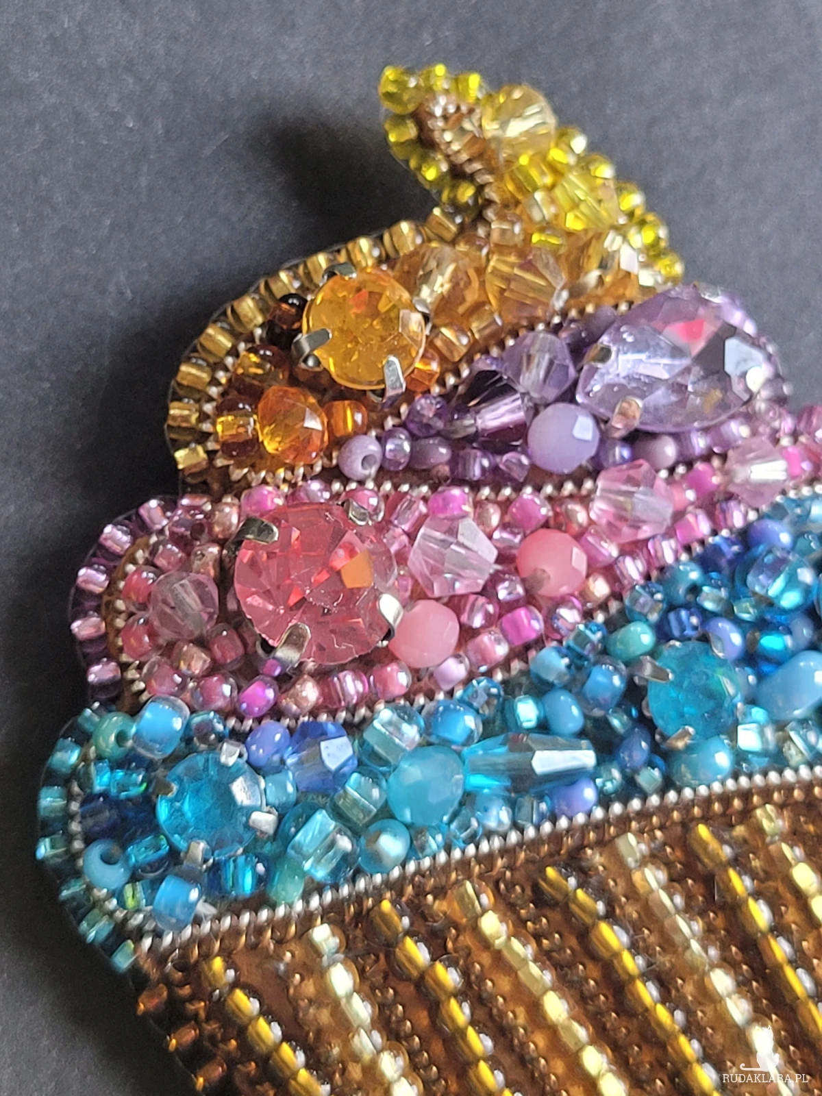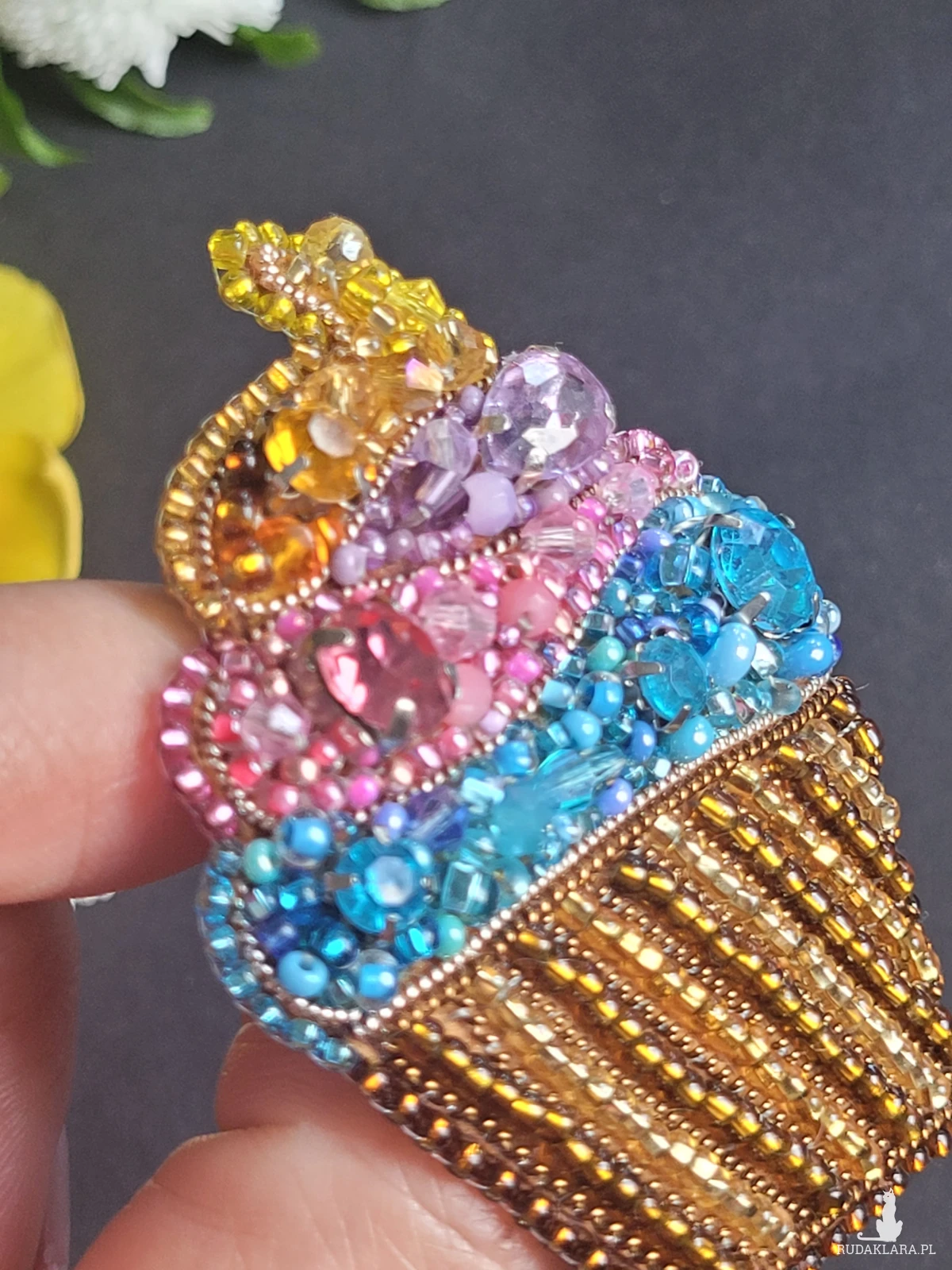 🧁 Kolorowa broszka Muffinka haftowana koralikami i krzyształkami 🧁 Ręcznie wykonana broszka w kształcie babeczki – pełna kolorowych koralików i kryształków. Idealna do kurtki, płaszcza, plecaka lub torebki! Przyciąga wzrok i dodaje uroku każdej stylizacji. 🎁 Świetny pomysł na prezent!
