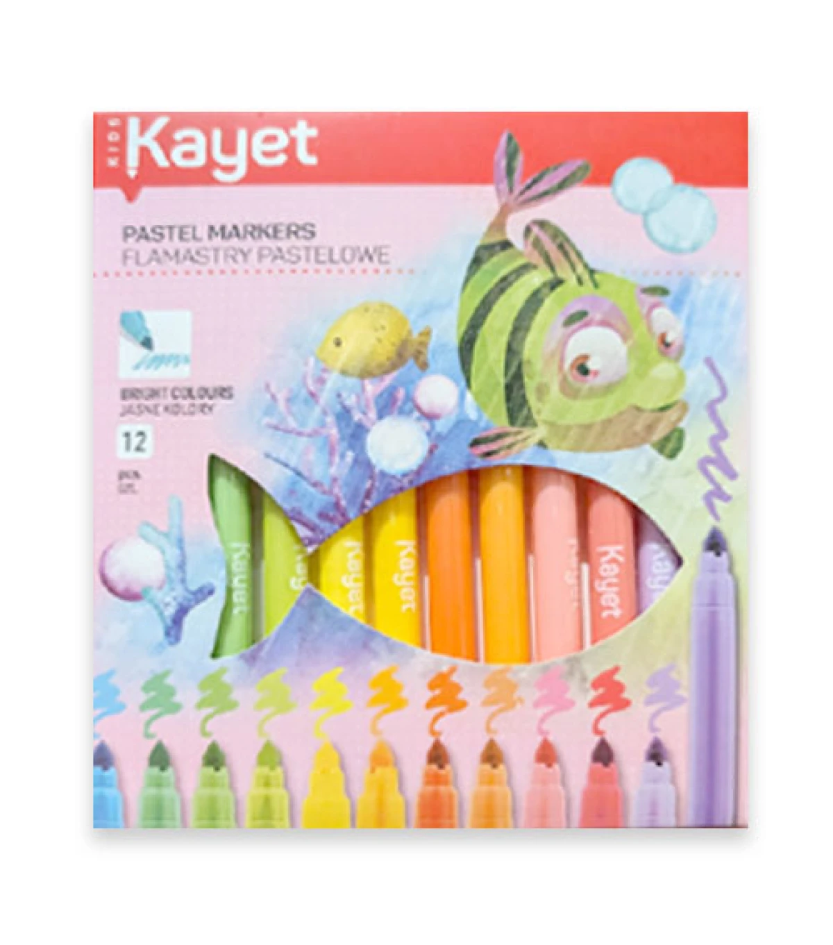 Komplet kolorowych flamastrów pastelowych, 12 sztuk, marka Kayet.