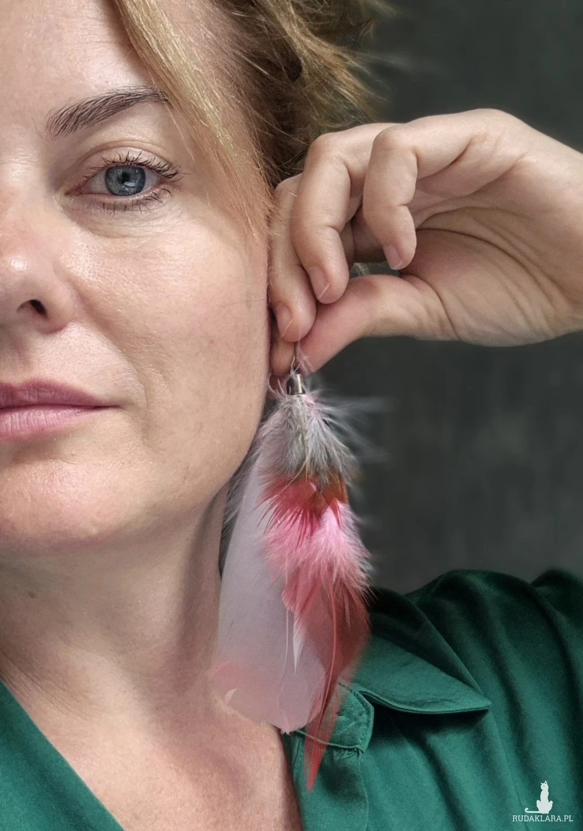 Klipsy długie pióra kolorowe  bardzo stylowe polecam zwracają uwagę duże leciutkie cudne Box X1