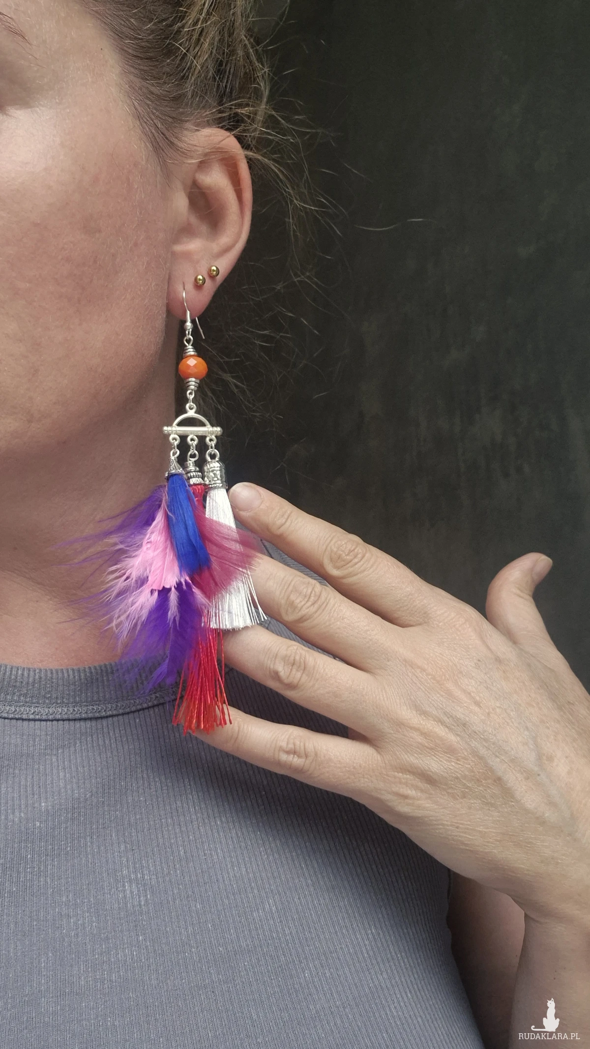 Kolczyki kolorowe chwosty bardzo stylowe polecam zwracają uwagę duże ,jedyny egzemplarz  cudne Box X1