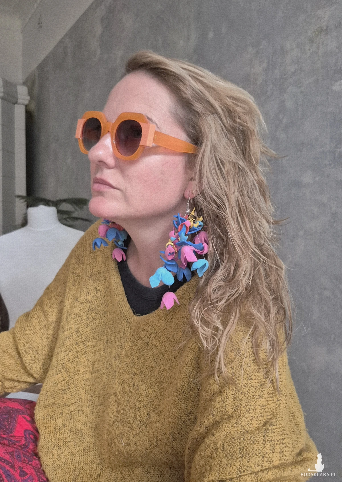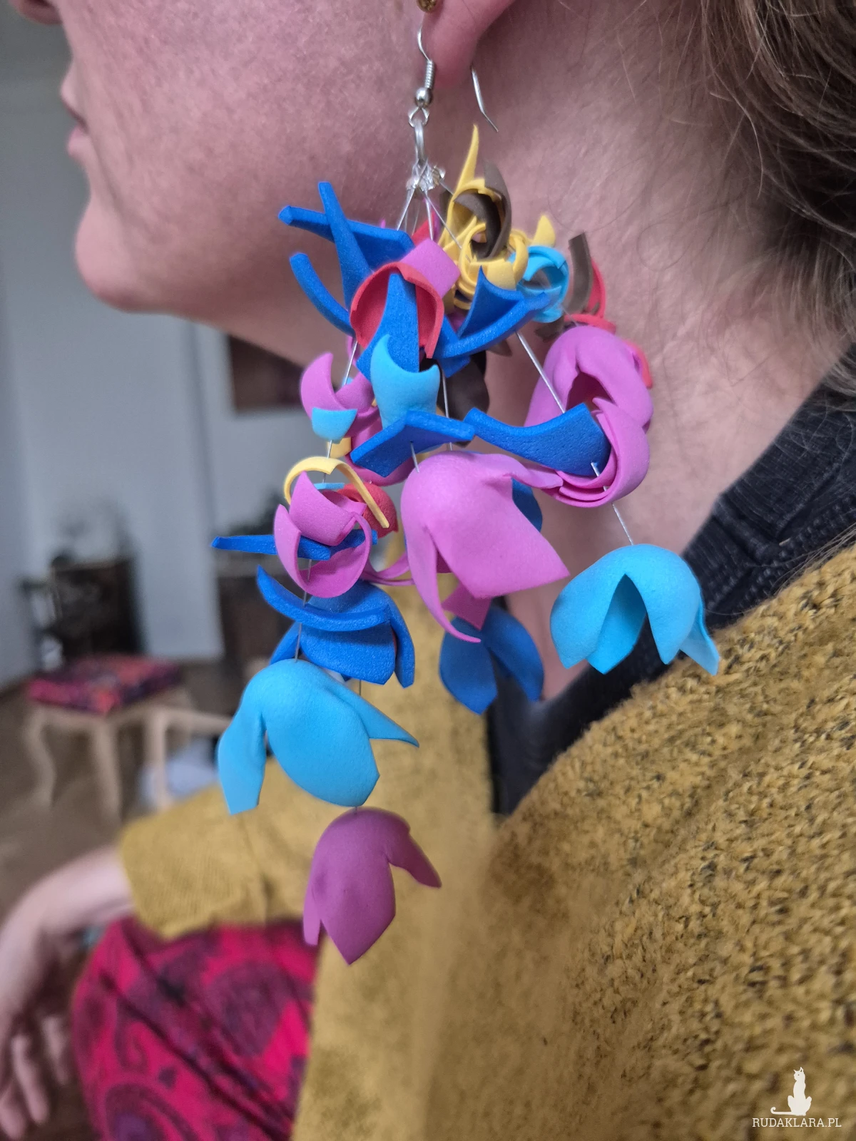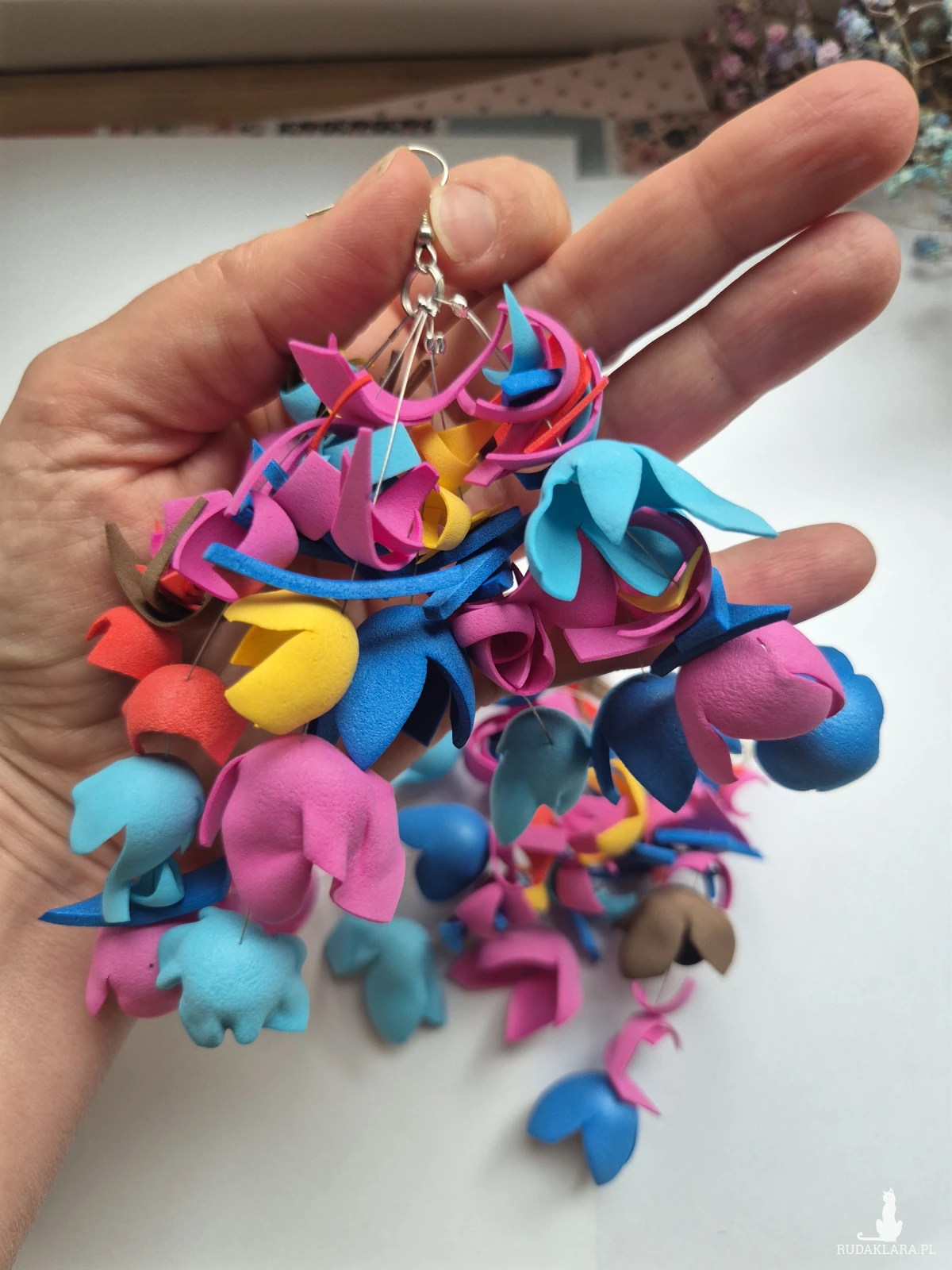 Kolczyki kolorowe kwiaty dlugie bardzo stylowe polecam zwracają uwagę duże leciutkie cudne Box X1