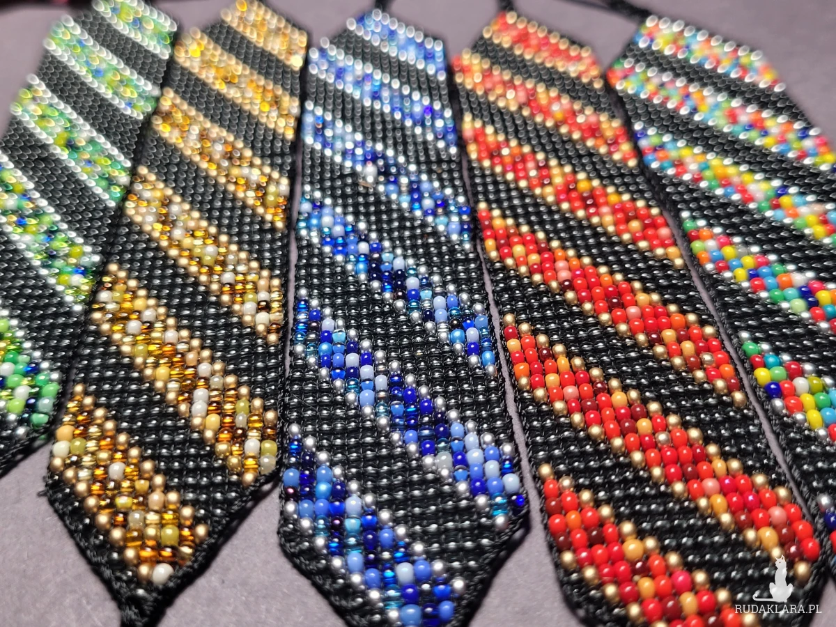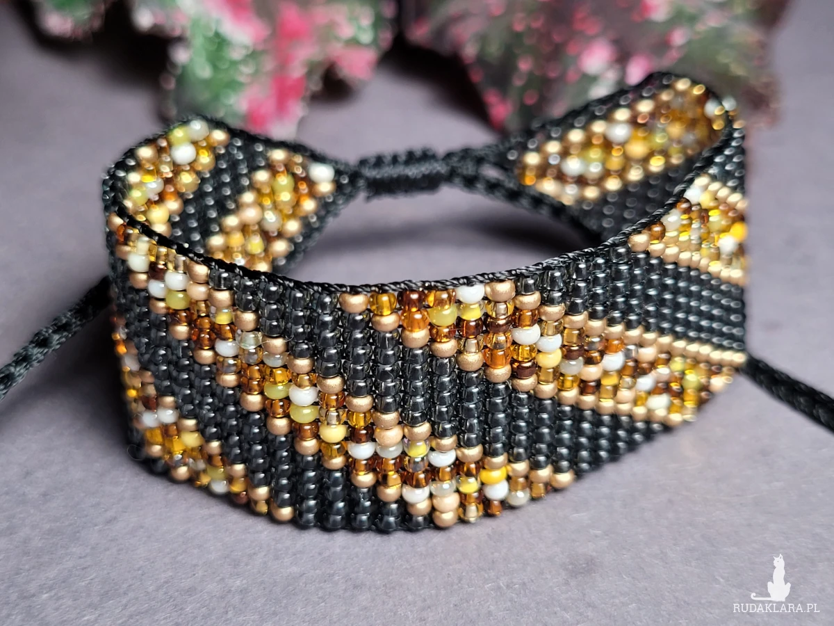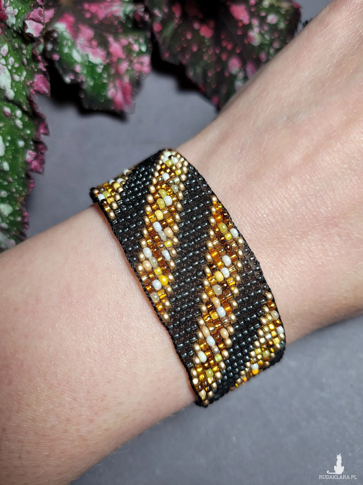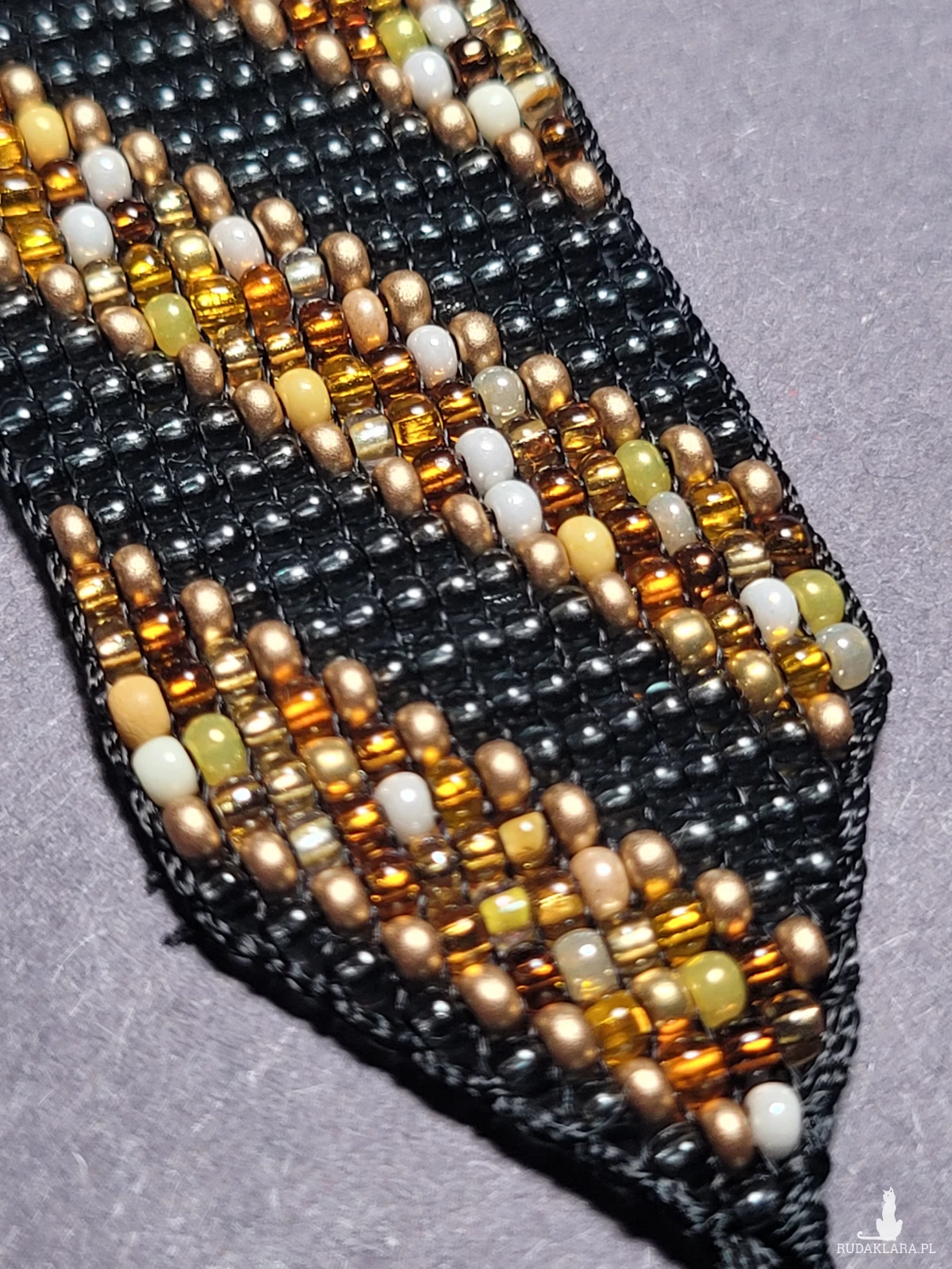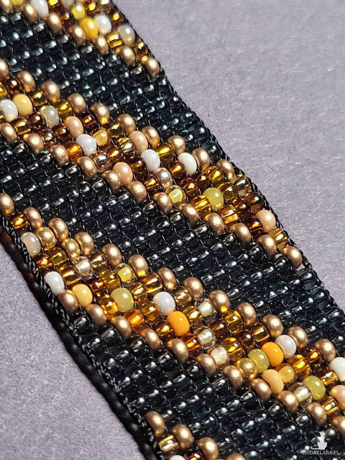 Bransoletka "Paski" własnoręcznie zrobiona na krosnie ze szklanych koralików czeskich.