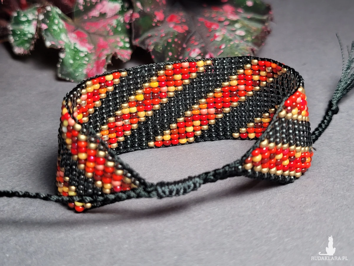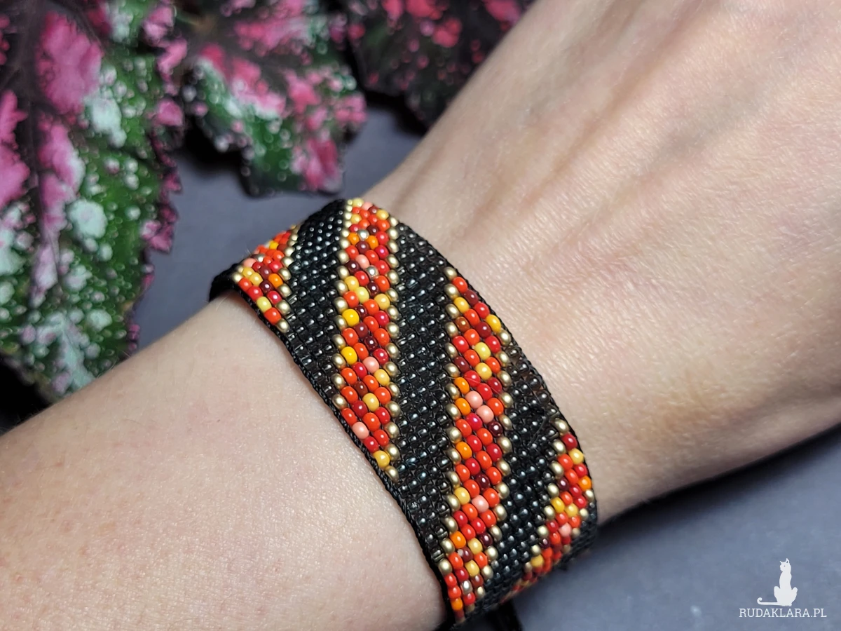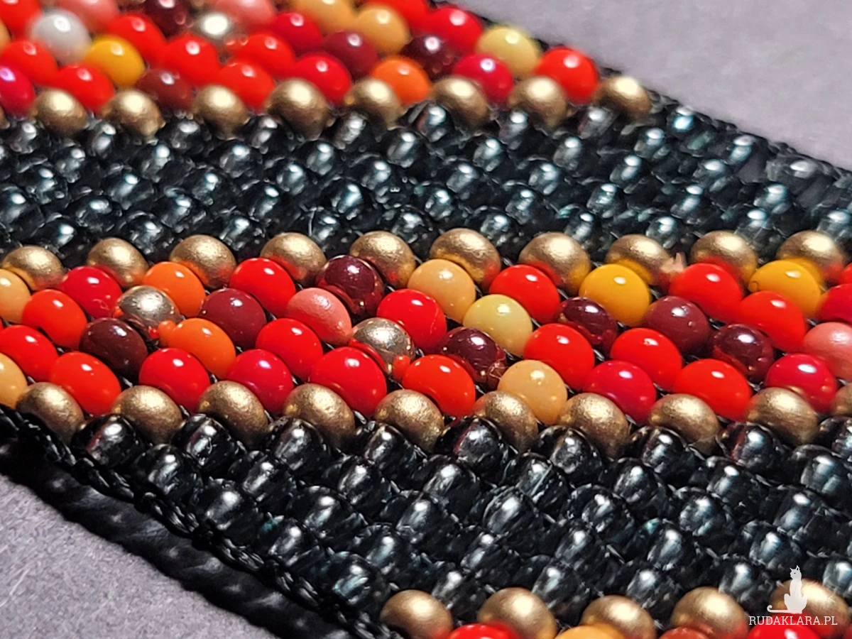 Bransoletka "Paski" własnoręcznie zrobiona na krosnie ze szklanych koralików czeskich.
