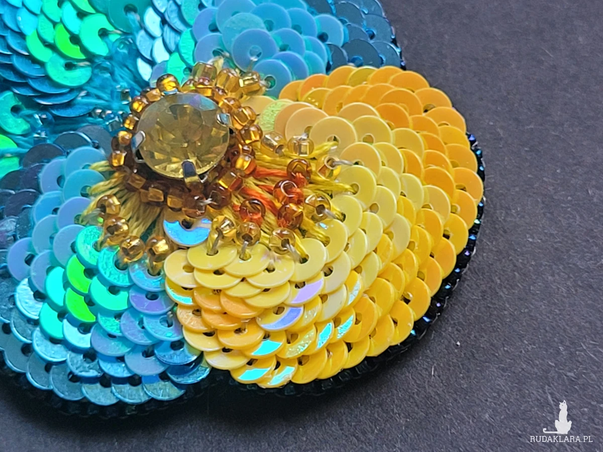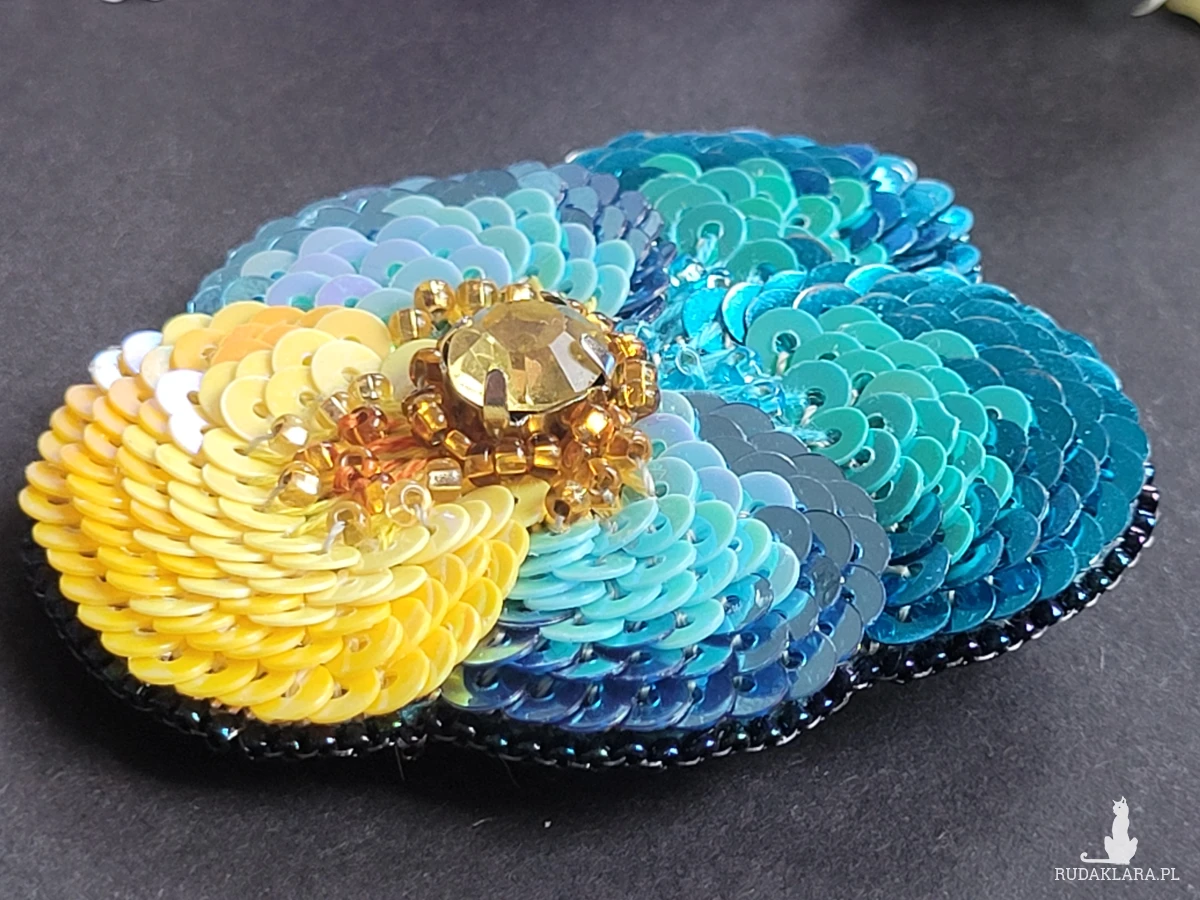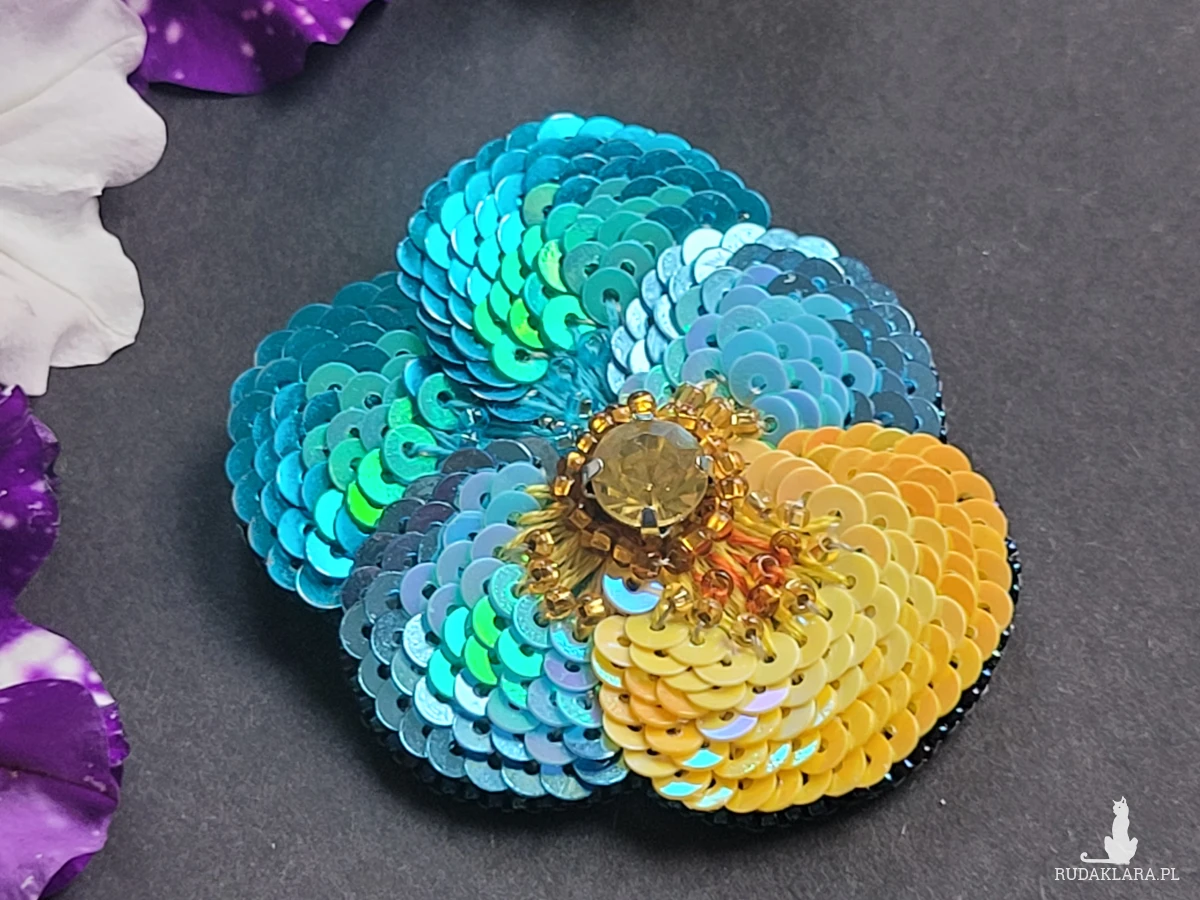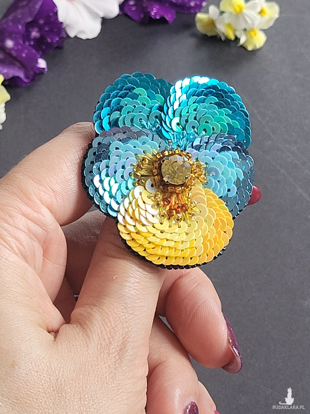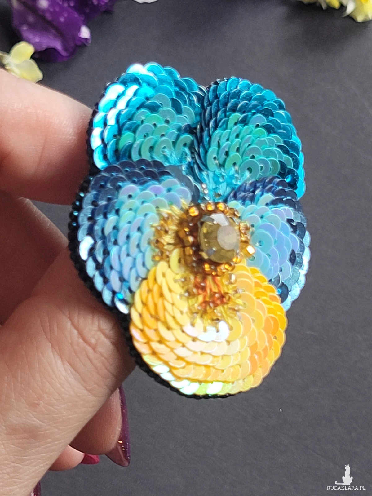 🌸✨ Broszka kwiatek Bratki z cekinów i koralików ✨🌸