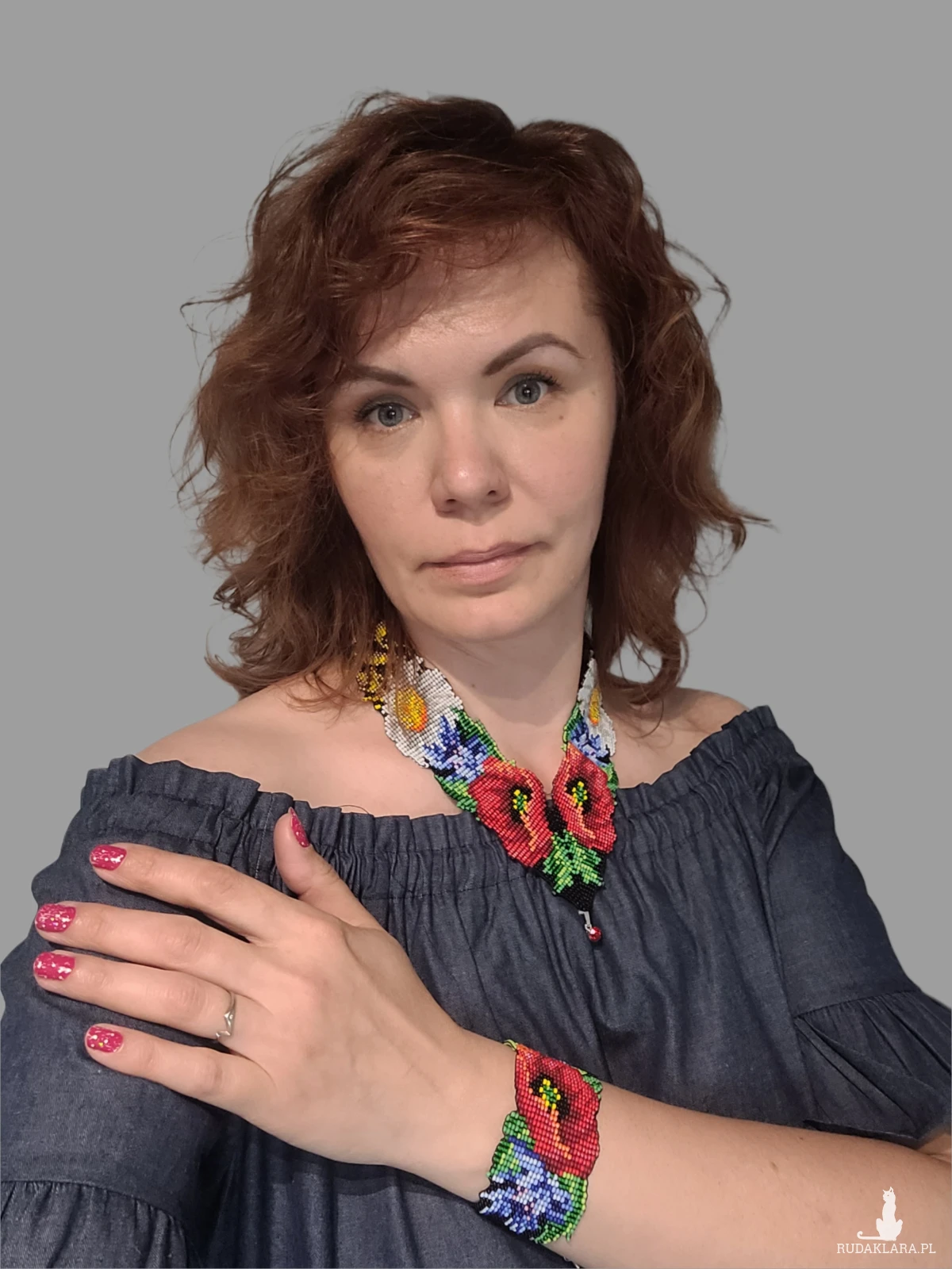 ? Informacje o bezpieczeństwie i ostrzeżenia ~ Produkt nieodpowiedni dla dzieci poniżej 3. roku życia – zawiera drobne elementy, które mogą stanowić ryzyko zadławienia. ~ Hipoalergiczne materiały – wykonane z wysokiej jakości szklanych koralików i metalowych zapięć, jednak osoby z nadwrażliwością na metale powinny upewnić się, że produkt nie wywoła reakcji alergicznych. ~ Nie należy narażać na kontakt z wodą – długotrwałe zanurzenie w wodzie lub wilgotnym środowisku może osłabić strukturę koralików oraz metalowych elementów. ~ Unikać kontaktu z chemikaliami – perfumy, środki czyszczące i inne chemiczne substancje mogą uszkodzić powierzchnię koralików i metalu. ~ Chronić przed nadmiernym naciskiem i upadkami – delikatna struktura biżuterii może ulec uszkodzeniu w wyniku silnego nacisku lub upadku na twardą powierzchnię. ~ Przechowywać w suchym i zacienionym miejscu – najlepiej w miękkim woreczku lub pudełku, aby uniknąć zadrapań i plątania się biżuterii. ? Instrukcja użytkowania i pielęgnacji ✔ Aby biżuteria zachowała swój wygląd przez długi czas, po każdym użyciu warto delikatnie przetrzeć ją miękką, suchą ściereczką. ✔ Nie należy ciągnąć ani nadmiernie wyginać biżuterii, aby uniknąć deformacji. ✔ W przypadku zabrudzeń można przetrzeć biżuterię lekko wilgotną szmatką, ale nie zanurzać jej w wodzie. ✔ Przechowywać w osobnym opakowaniu, aby zapobiec plątaniu się i uszkodzeniom mechanicznym. Może wywoływać alergie. Z przedmiotu należy korzystać w odpowiedni sposób - nie poddawać go działaniu ognia, słonej wody morskiej lub wody chlorowanej, nie pozostawiać na słońcu.