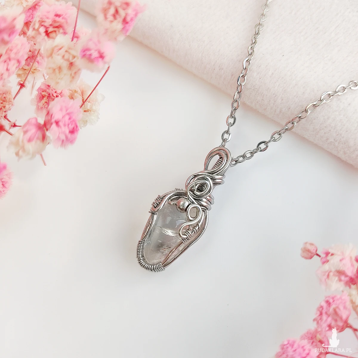 Naszyjnik Kryształ Górski ręcznie robiony. Wykonany techniką wire wrapping z drutów ze stali chirurgicznej.