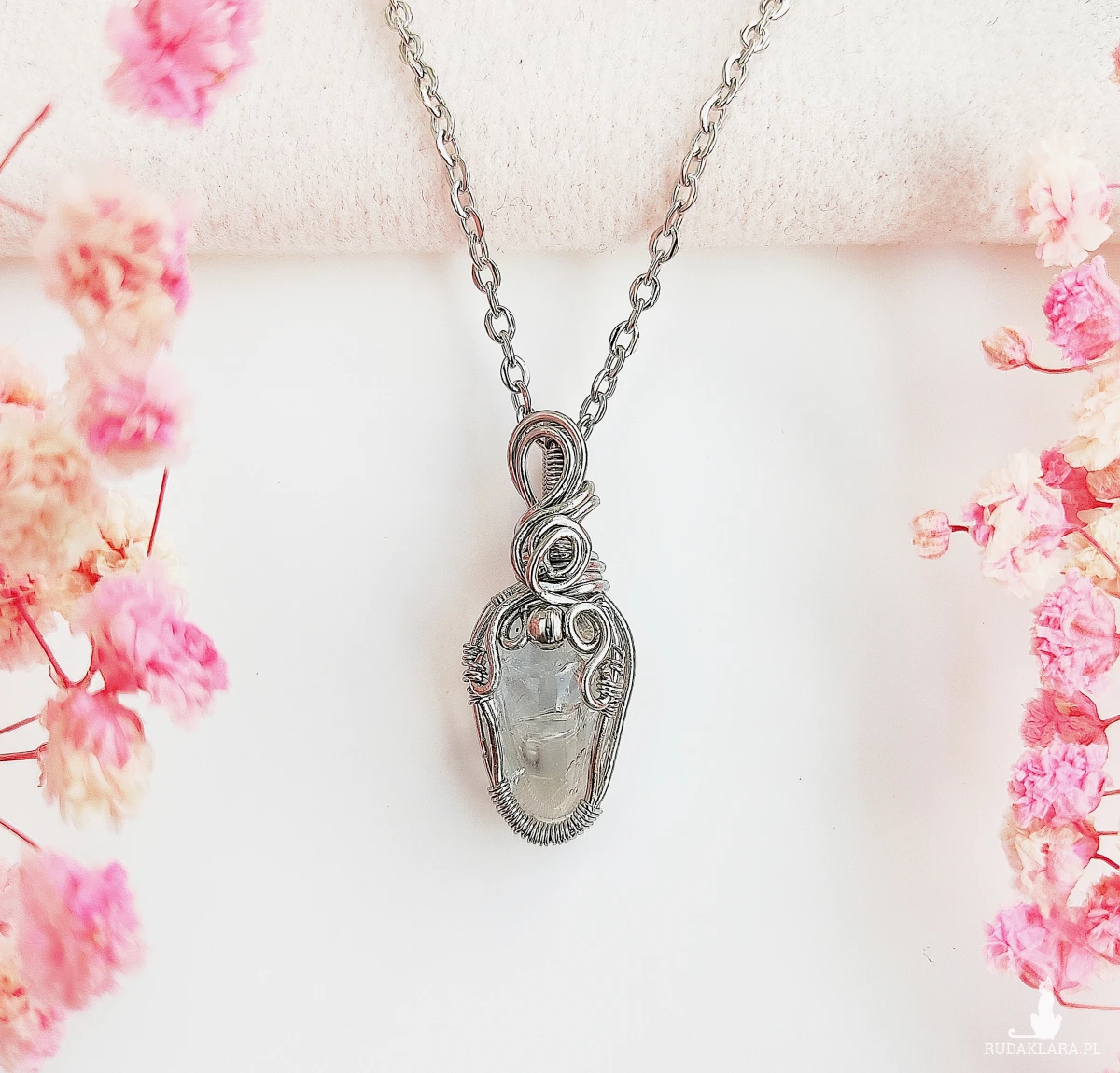 Naszyjnik z kryształem górskim wykonany metodą wire wrapping to propozycja dla osób, które szukają wyjątkowej biżuterii z naturalnym kamieniem. Kryształ górski od wieków jest uznawany za kamień czystości, harmonii i wewnętrznej równowagi. Wierzono, że oczyszcza zarówno ciało, jak i umysł, a także wspomaga koncentrację i chroni przed negatywną energią. W tym naszyjniku pełni nie tylko funkcję dekoracyjną, ale również symboliczną – może towarzyszyć Ci na co dzień jako osobisty amulet lub delikatny talizman.