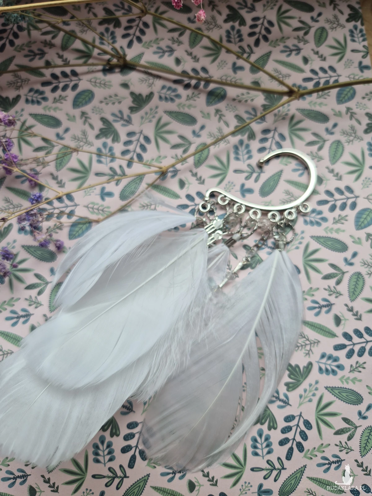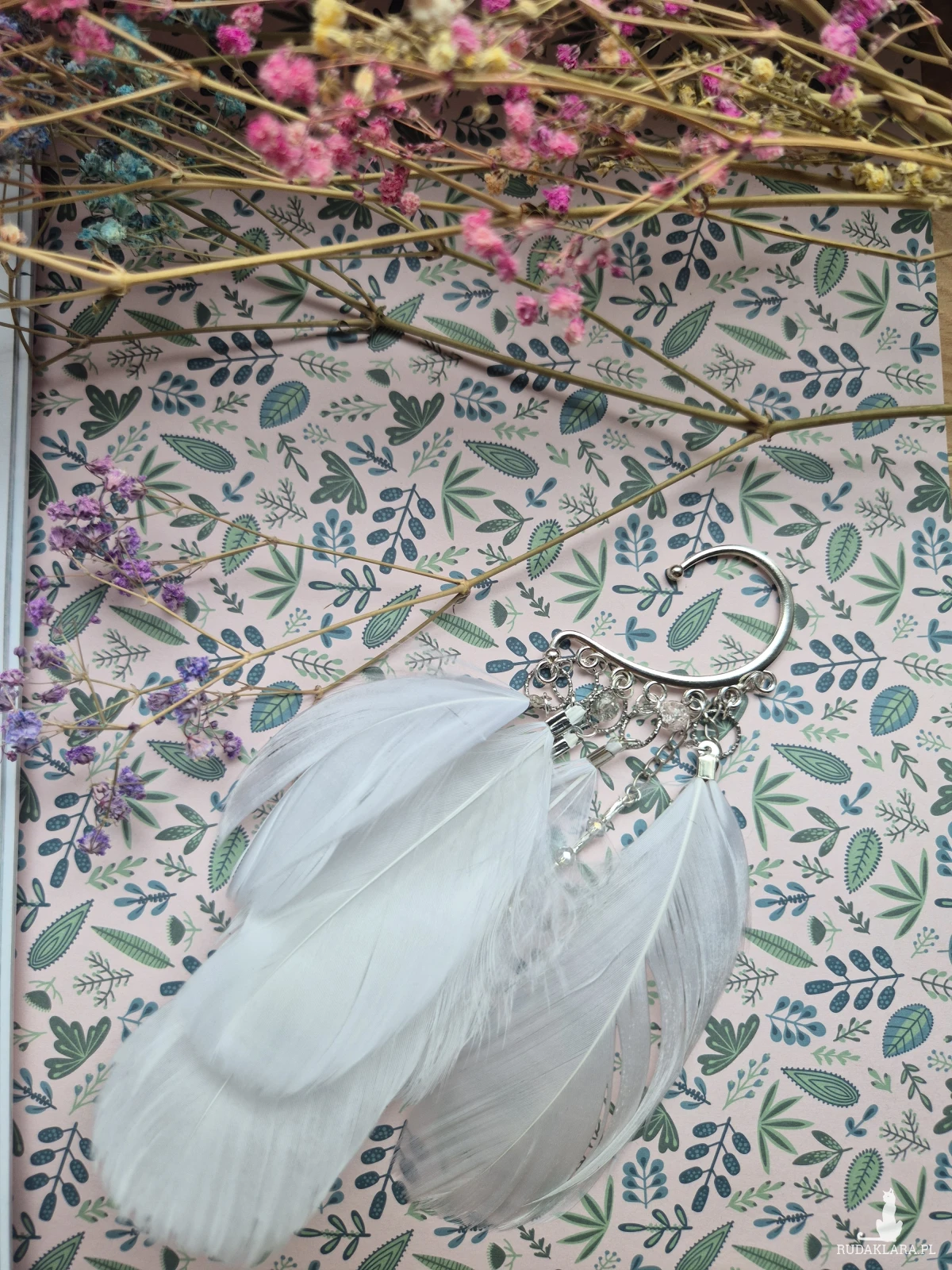 nausznica piora biała boho, może być ślubna- box x1- nausznica w stylu boho na jedno ucho, polecam