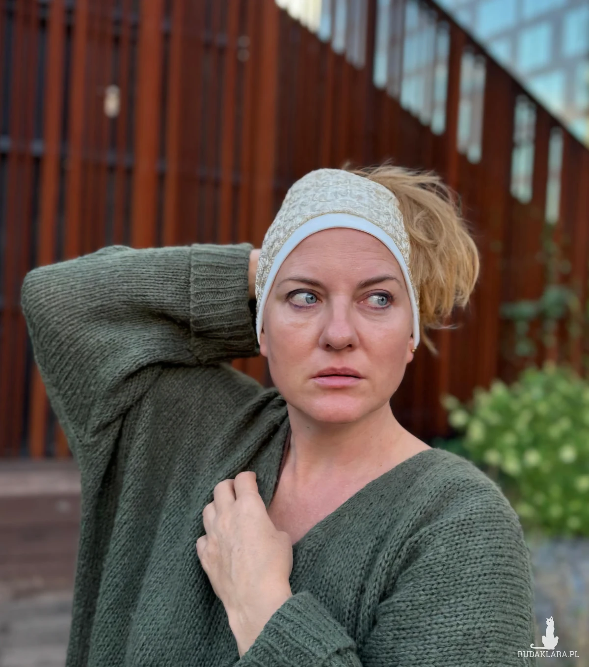 opaska koronkowa ecru beż podwójna świetna na codzienne noszenie lekko rozciągliwa, miękka, polecam, box w1