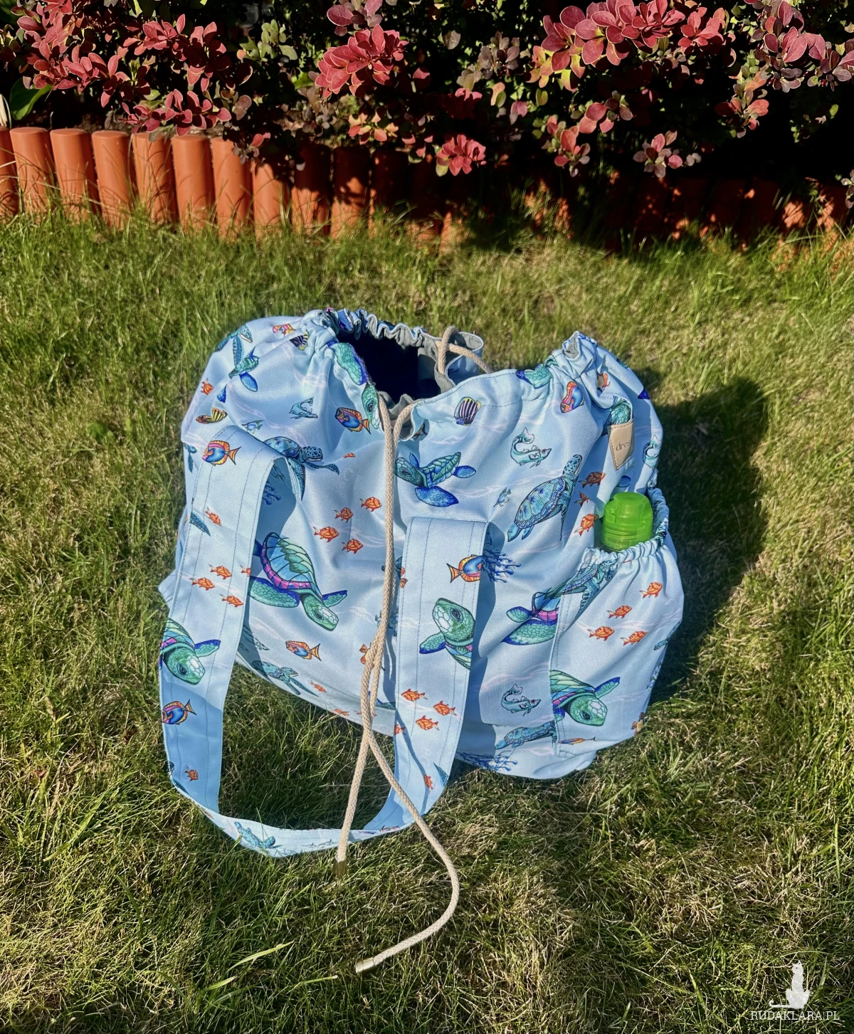 Druga istotna rzecz jest taka, że jest ściągana sznurkiem, w przeciwieństwie do zamka, który jest narażony na uszkodzenie przez piasek, sznurek jest trwalszy. Można też go wyjąć, a tunel przeznaczony na sznurek nie przeszkadza w użytkowaniu i torba nadal wygląda pięknie 😊