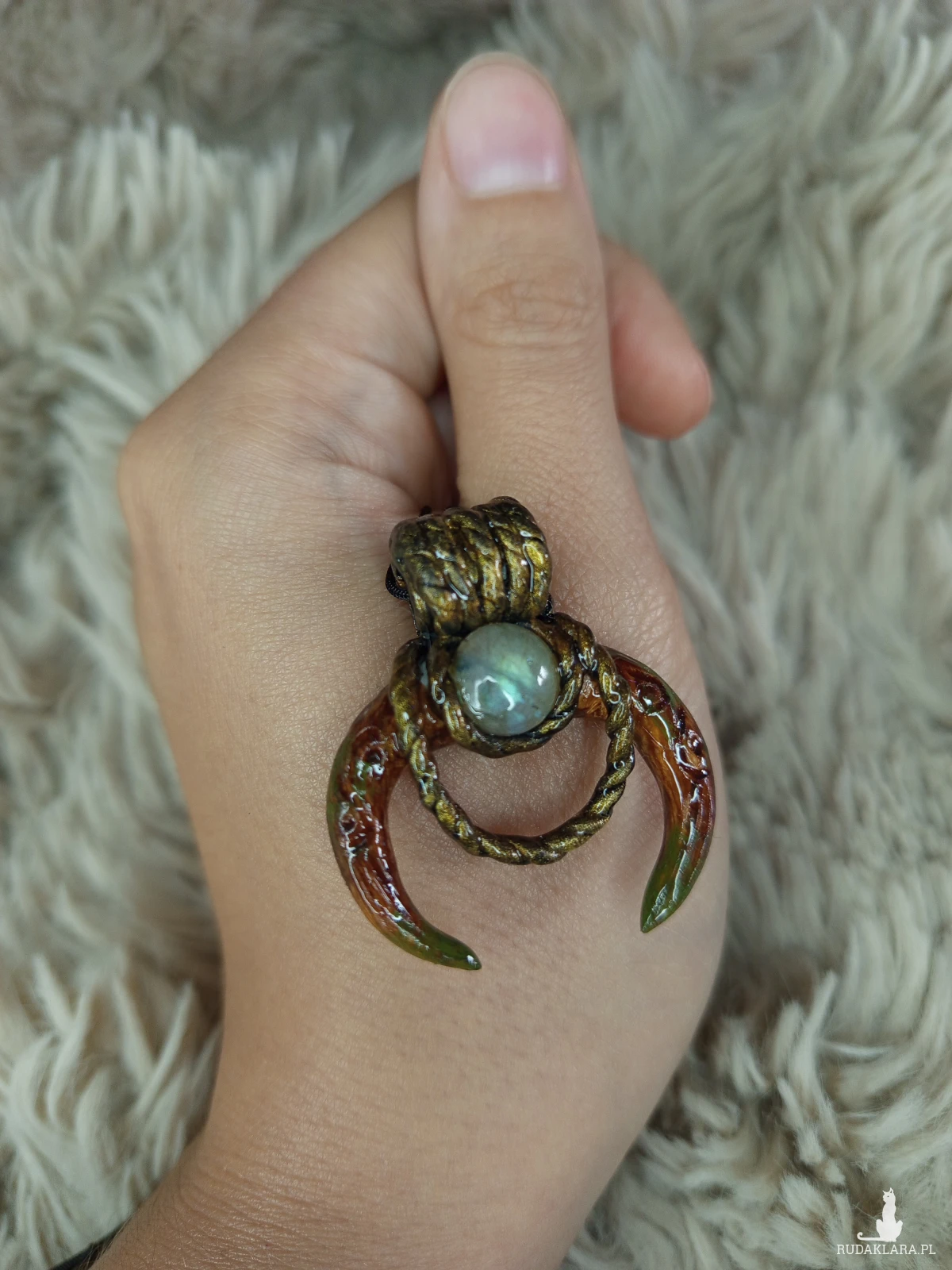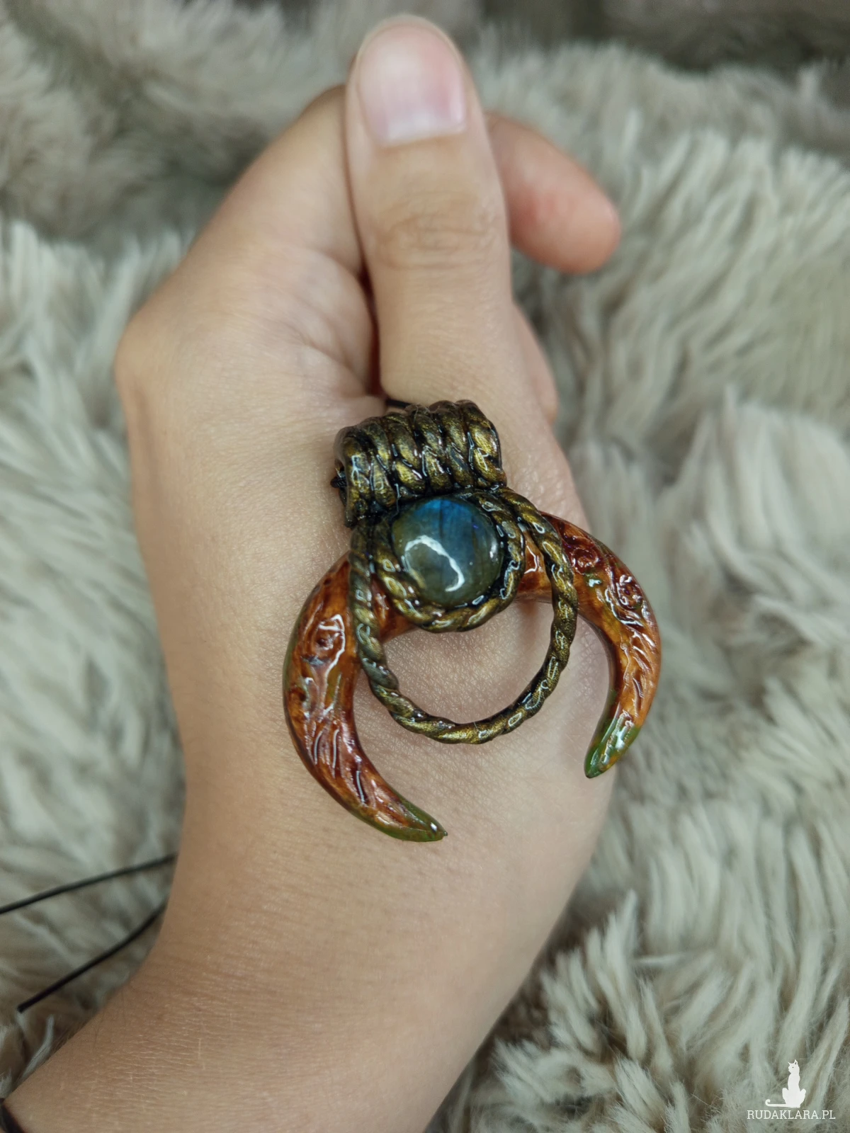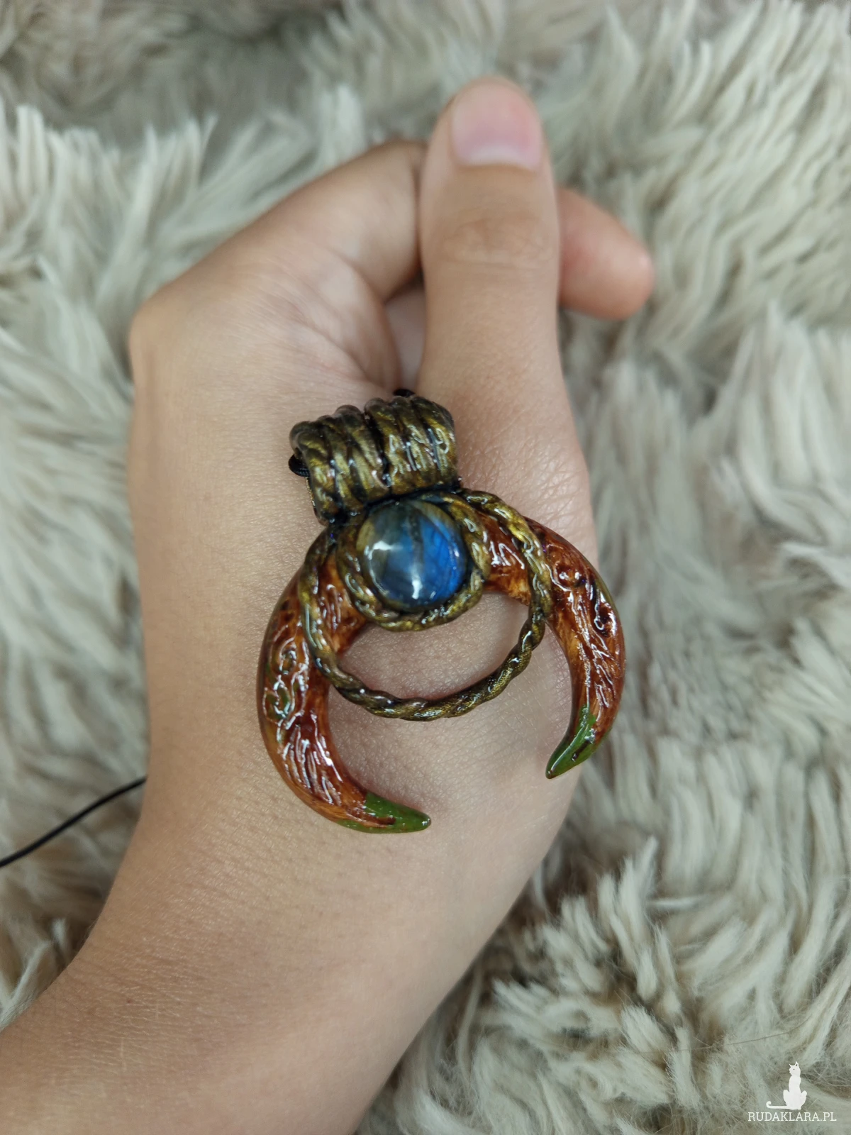 naszyjnik z masy polimerowej z labardorytem, ręcznie rzeźbiony oraz malowany