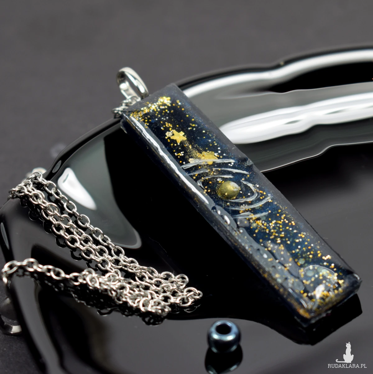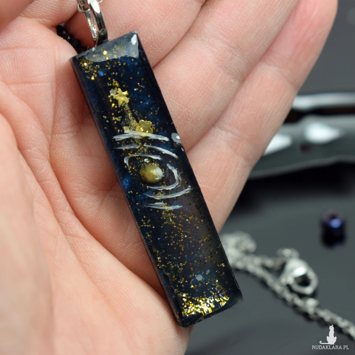 żywicy, z trójwymiarowym motywem galaktyki. Kolorystyka oparta na