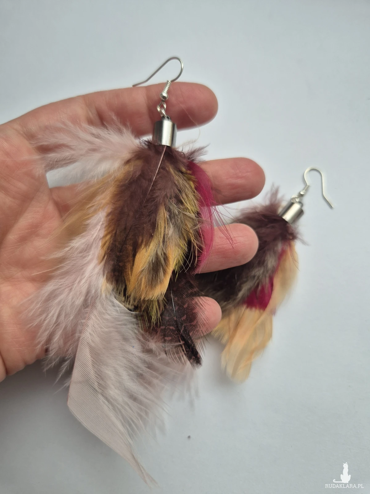 Kolczyki bordowe pióra eleganckie delikatne zwracające uwagę polecam Box X1