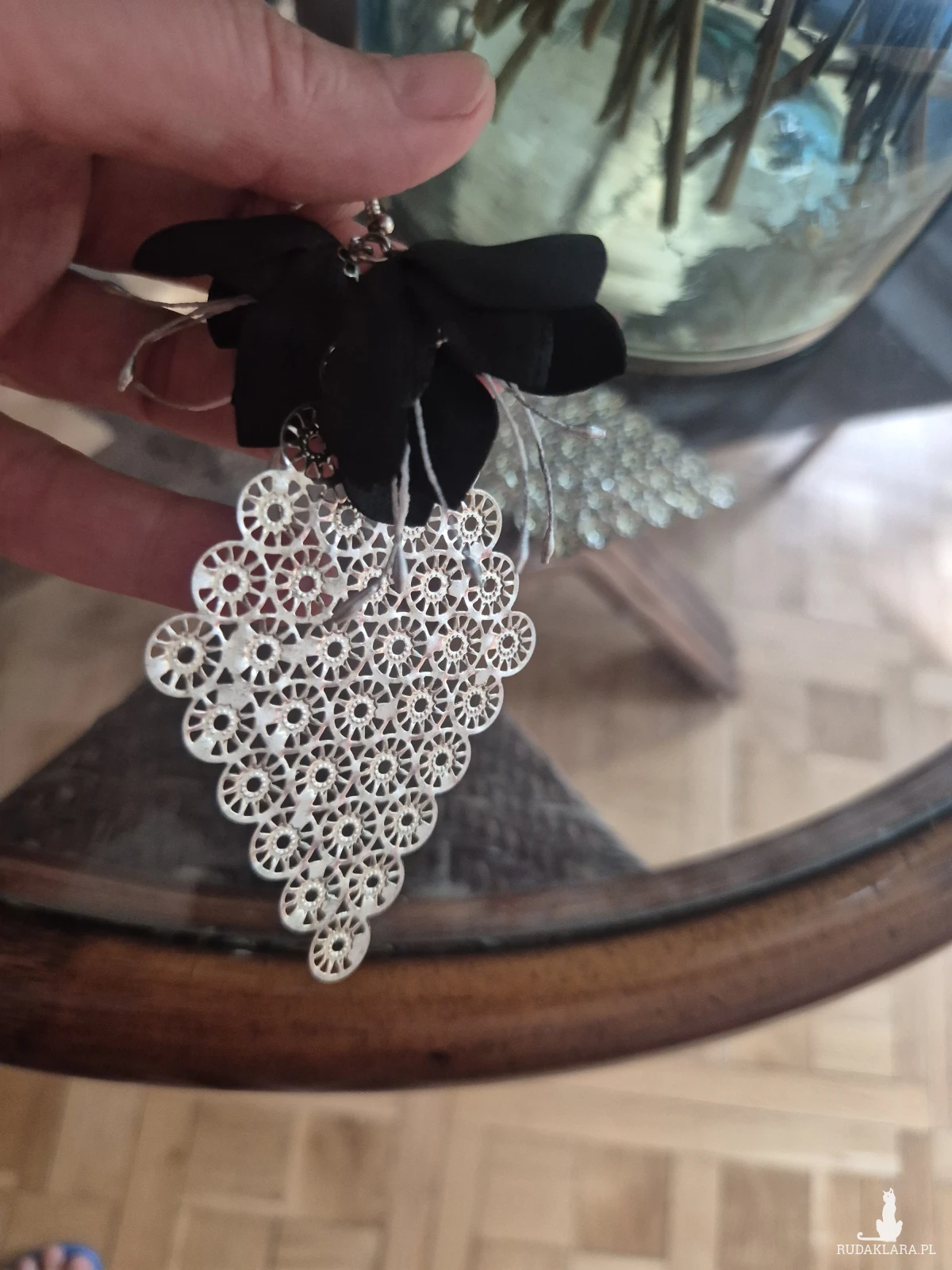 Kolczyki czarne kwiaty ażury  eleganckie delikatne zwracające uwagę polecam Box X1