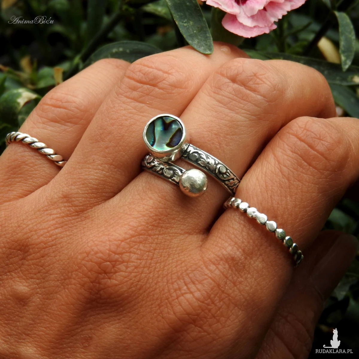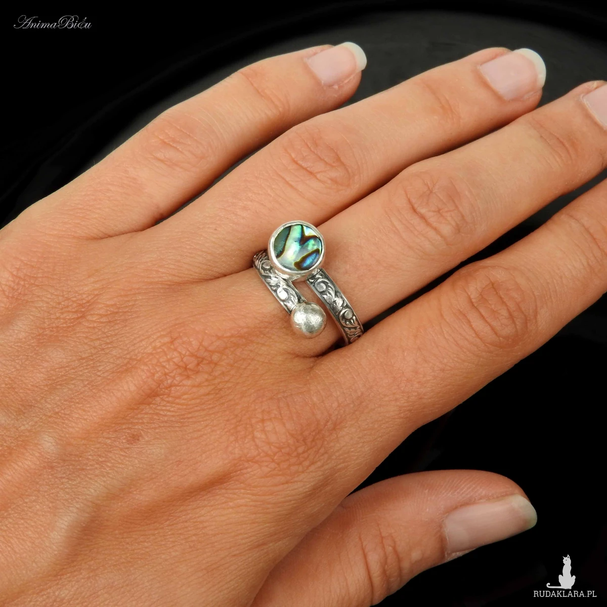 Pierścionek srebrny z muszlą Paua. Piękna, pochodząca z