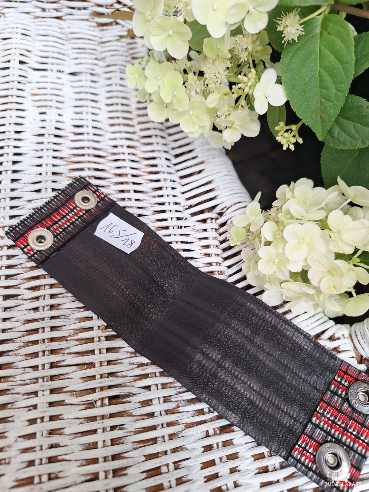 Bransoletka wykonana z przepięknej miękkiej skóry, maksymalna szerokość bransoletki 5 cm, obwód nadgarstka 16,5-18 cm, polecam pojedynczy egzemplarz, w chłodne dni ociepla nadgarstek