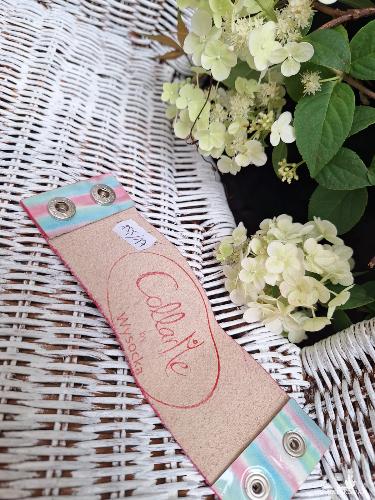 Bransoletka wykonana z lakierowanej, naturalnej skóry, maksymalna szerokość bransoletki 6 cm, obwód nadgarstka 15,5-17 cm, polecam pojedynczy egzemplarz, w chłodne dni ociepla nadgarstek