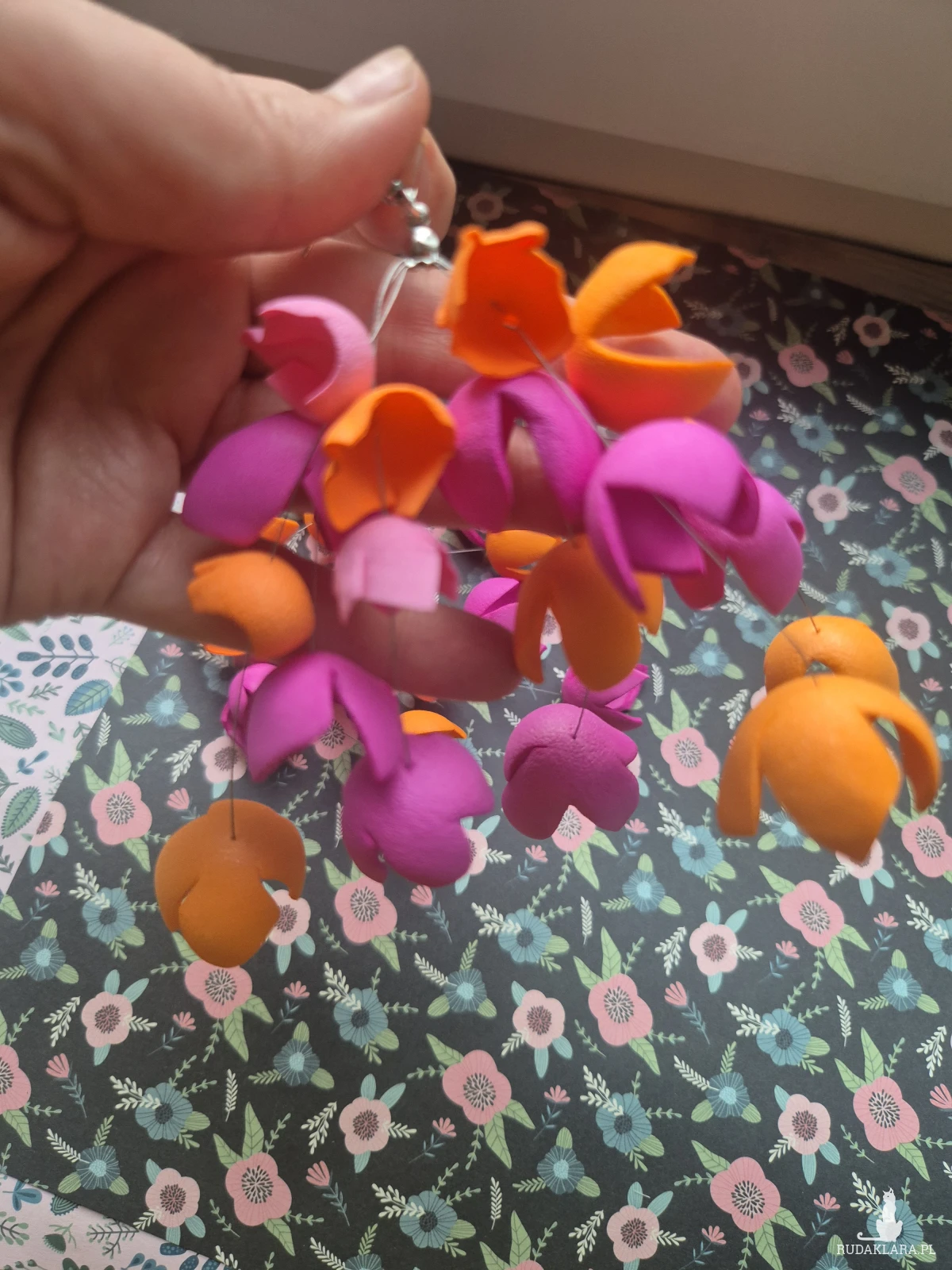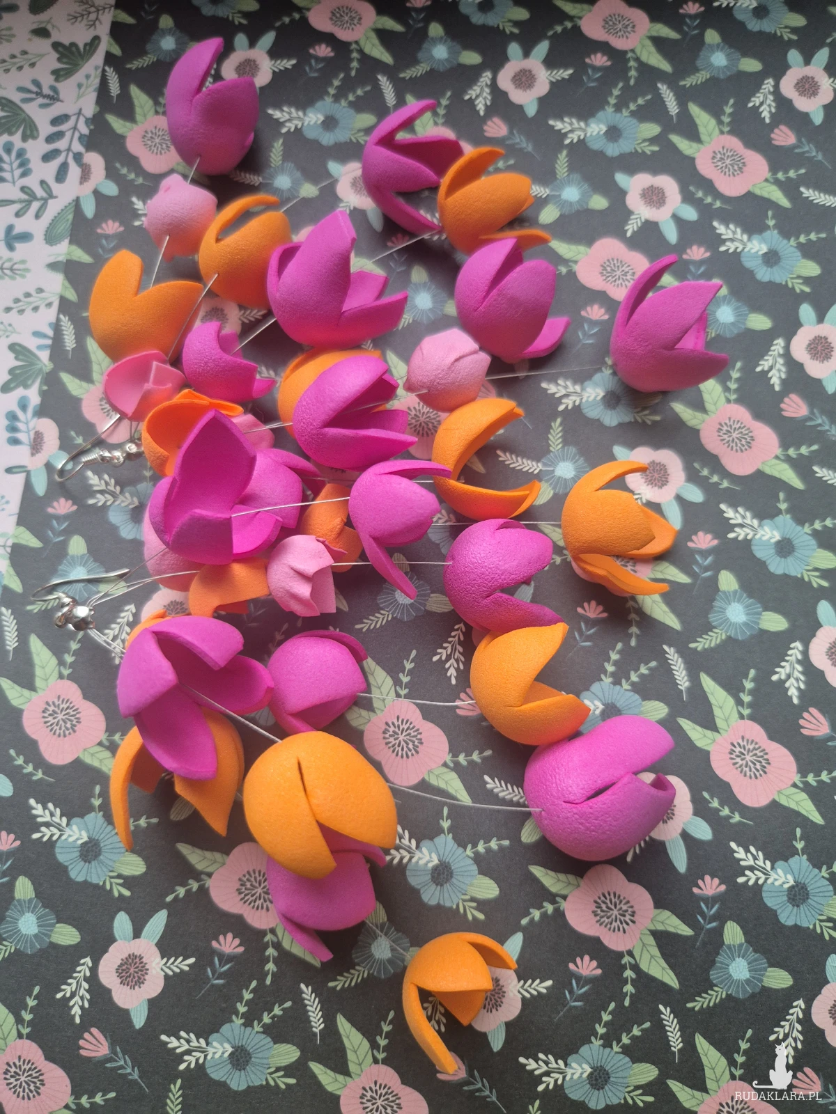 Kolczyki kwiaty pomarańczowo- różowe,leciutkie ,obłędne zwracają uwagę, kolczyki które wyglądają tak,że możesz założyć je do zwykłego stroju i od razu wyglądasz inaczej i jesteś widoczna w tłumie  polecam-wir