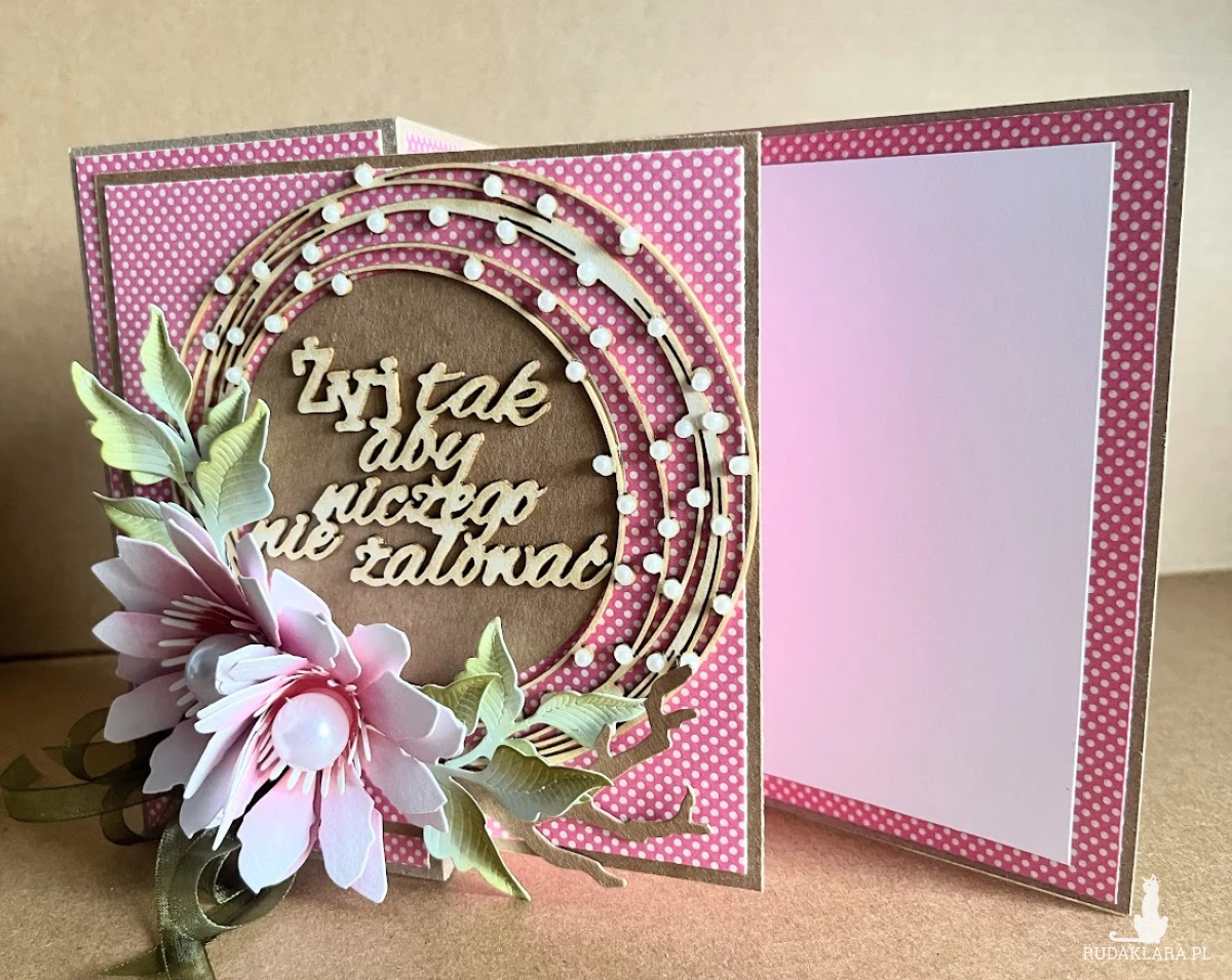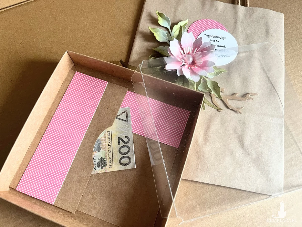 Wyjątkowa, bogato zdobiona kartka z okazji przejścia na emeryturę.Stworzona na bazie kraftowej z licznymi dodatkami w postaci tekturek oraz kwiatów ręcznie robionych. Wymiary kartki 14 x 14 cm. Do kompletu dołączone pudełko z przeźroczystym wieczkiem o wymiarze 15,5 x 15,5 w kolorze eco.Na dnie pudełka umieszczono kieszonkę na małe co nieco. Do kompletu dołączono torebkę kraftową w tej samej stylizacji o wym,22,5x18 Wewnątrz kartki umieszczono karnet na wypisanie własnych życzeń. W tej postaci kartka dostępna od ręki .Polecam