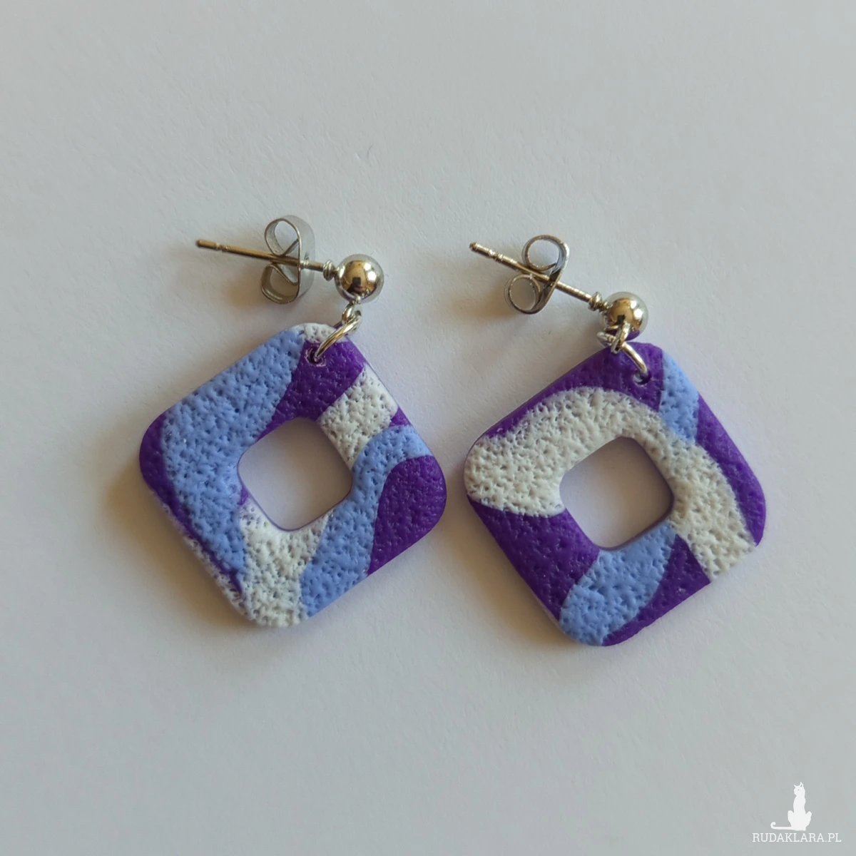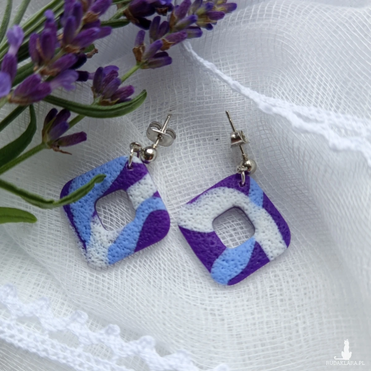 "Lotis II" - ręcznie robione kolczyki z gliny polimerowej w odcieniach fioletu.