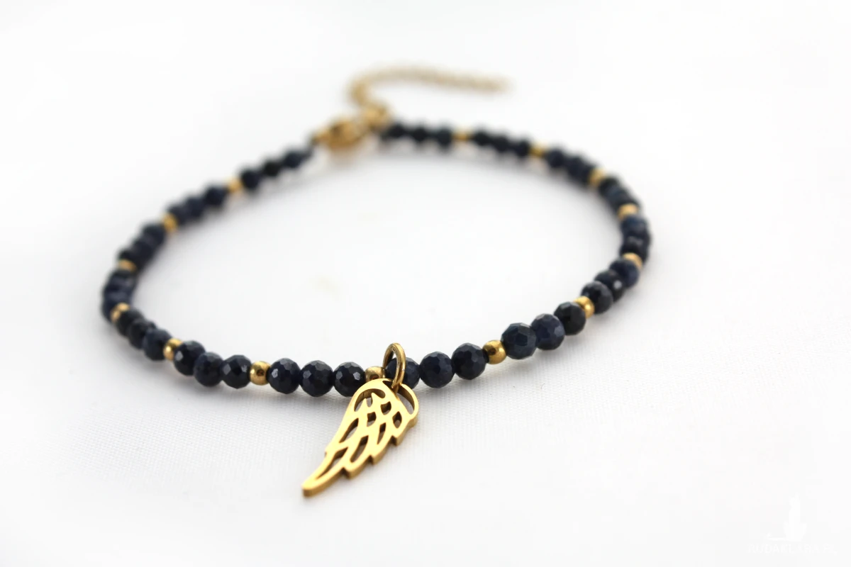 Kamienie: szafir fasetowany 0,3 cm, hematyt,