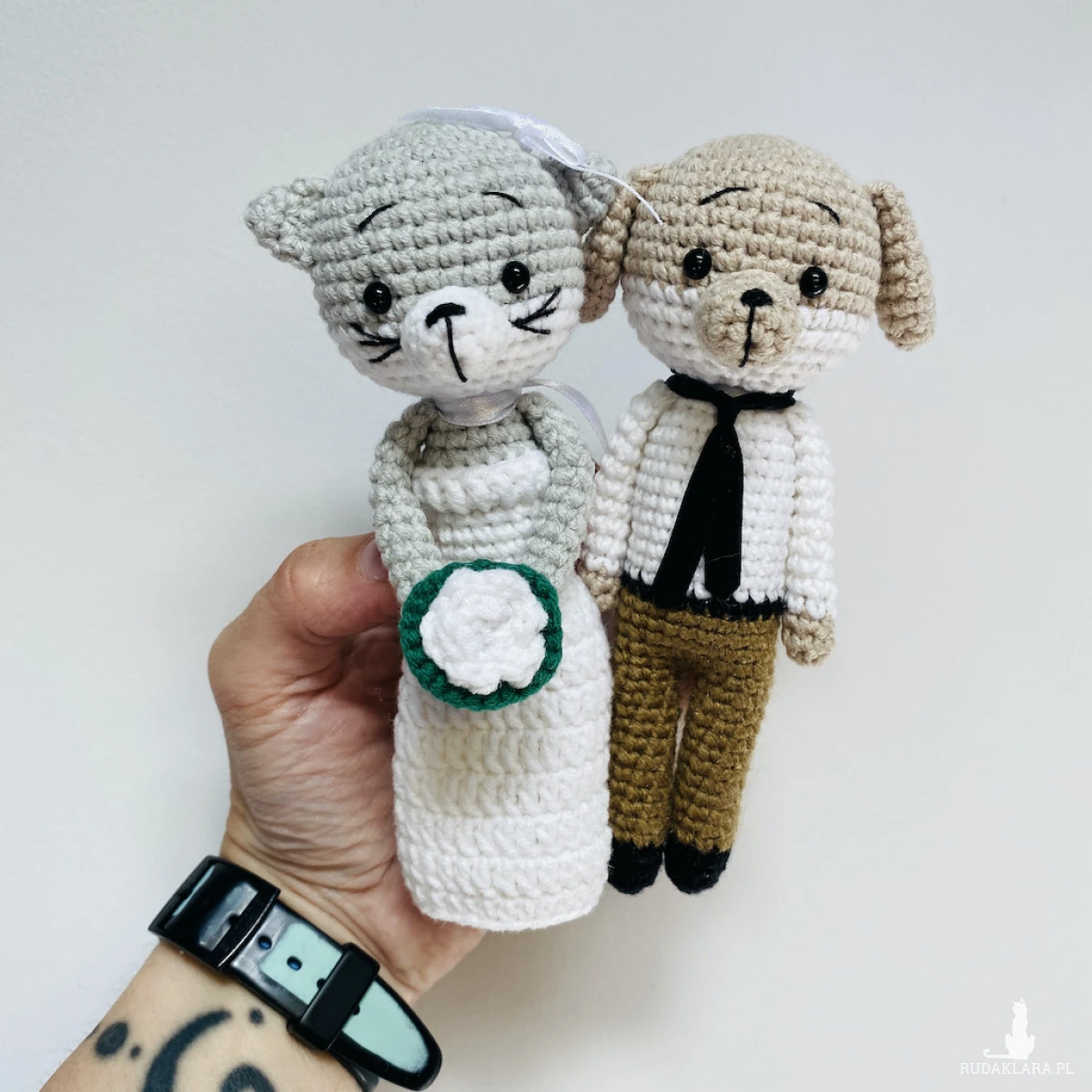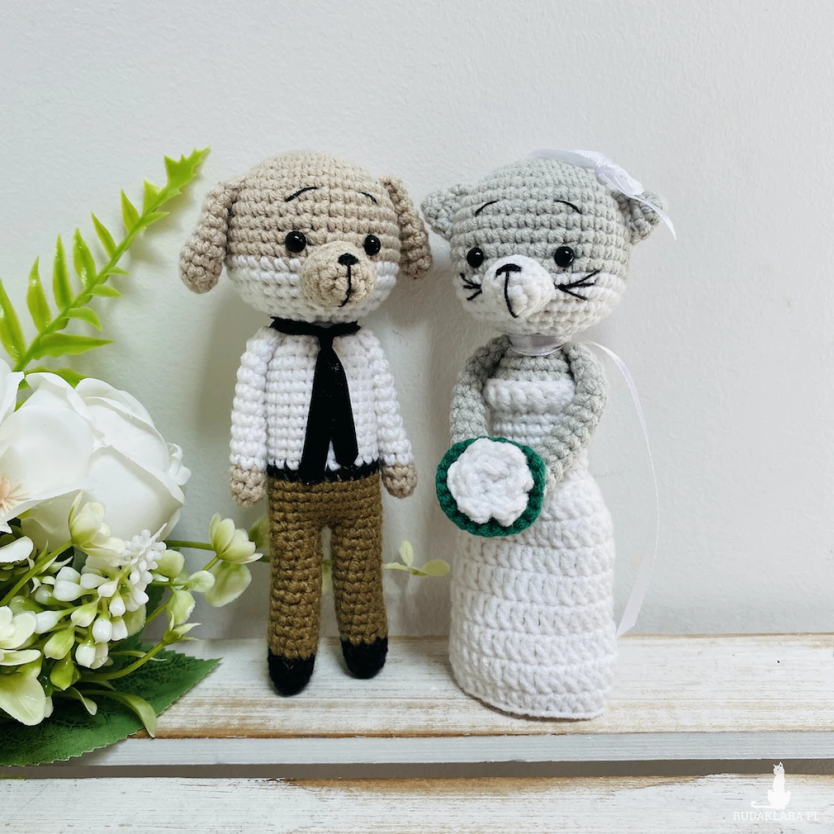 Młoda Para – pies i kot, maskotki ręcznie robione na szydełku – idealny prezent ślubny