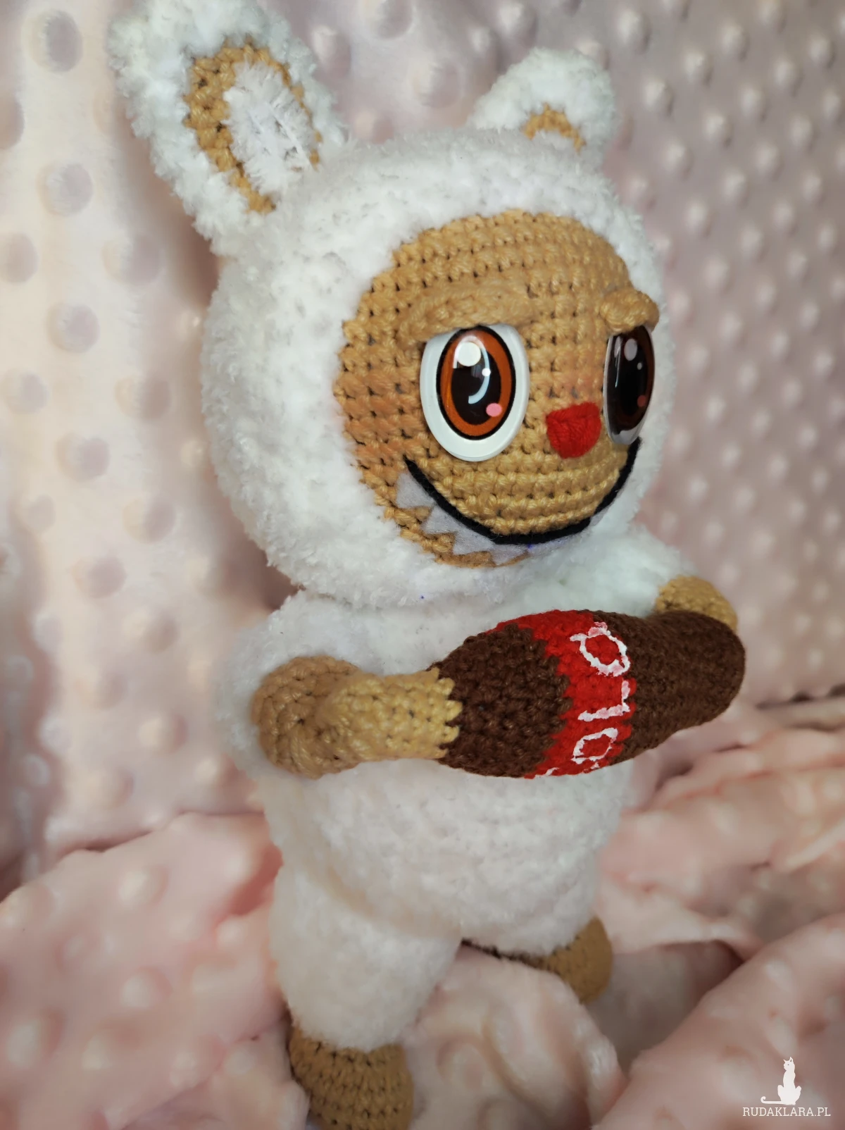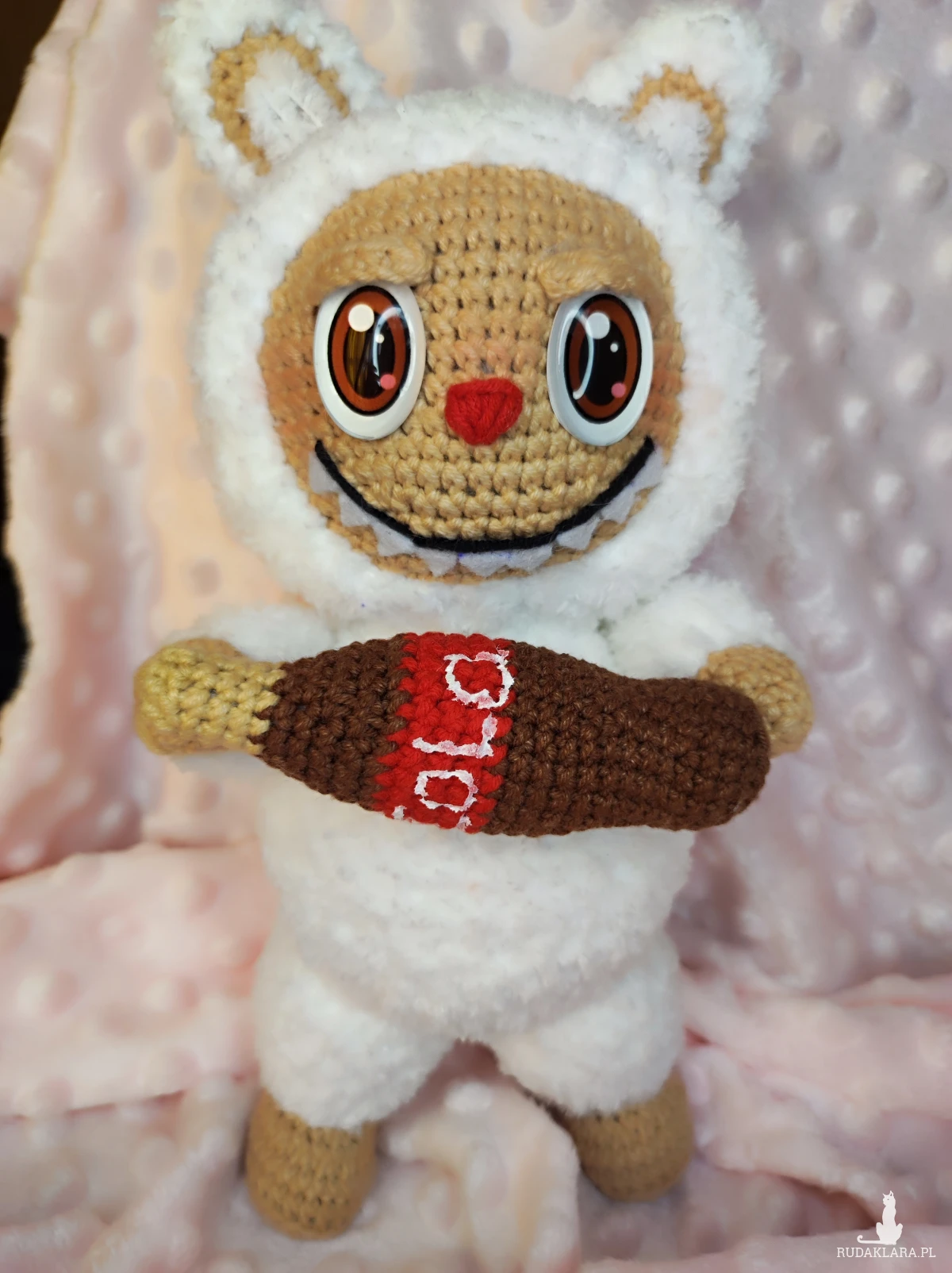 Maskotka Labubu na szydełku.
