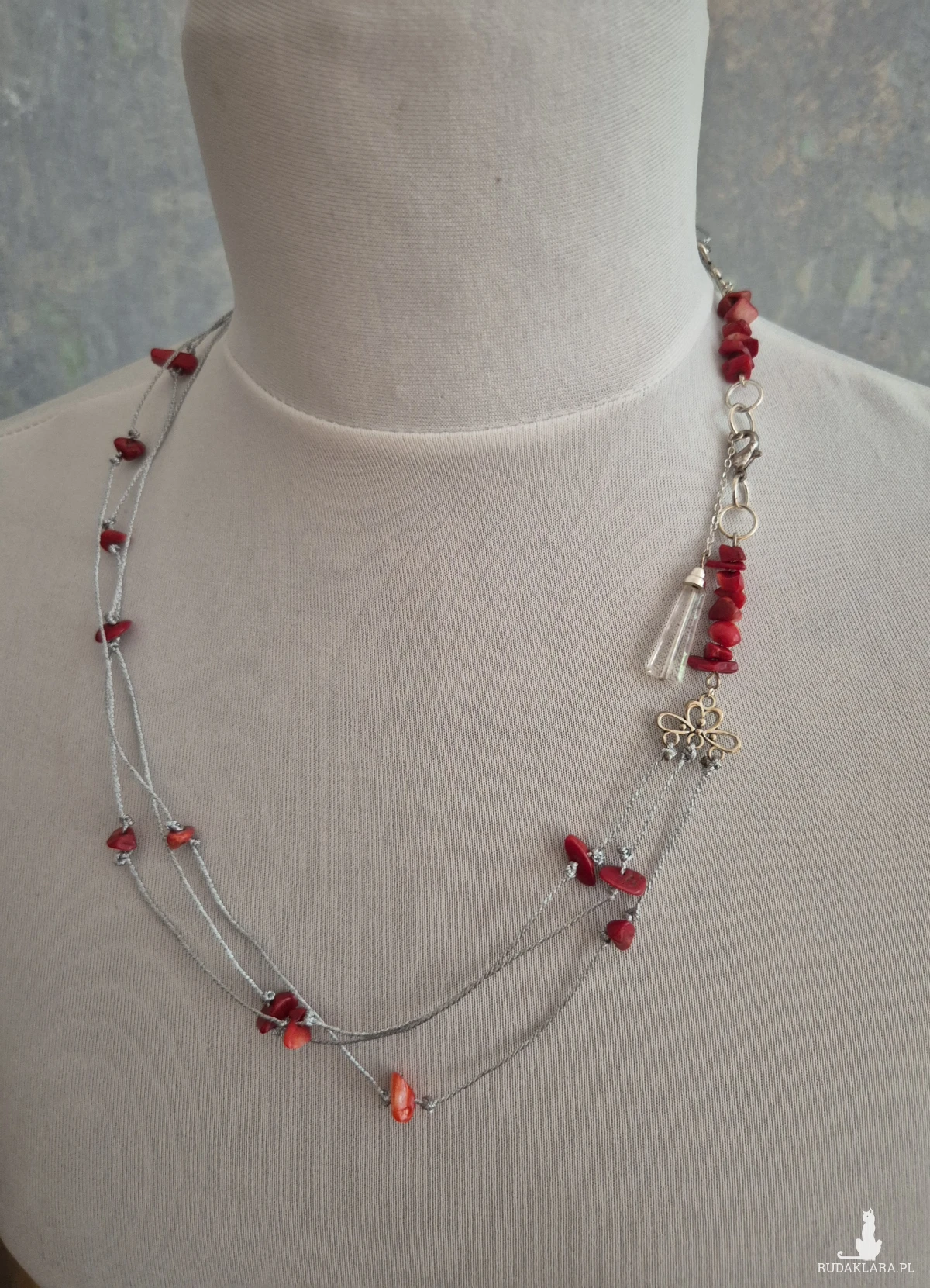 Naszyjnik delikatny w stylu   boho z koralem , polecam Box x1