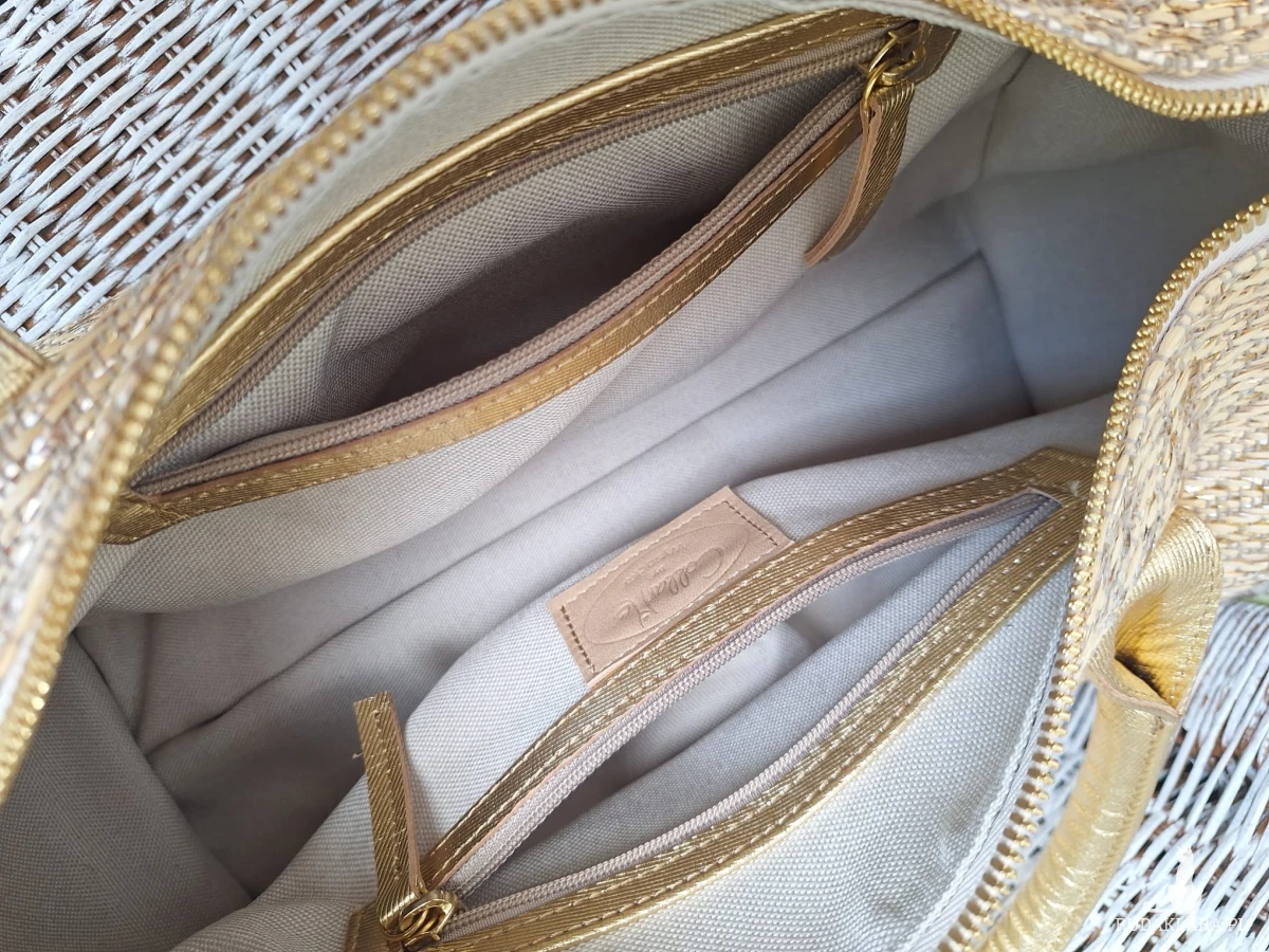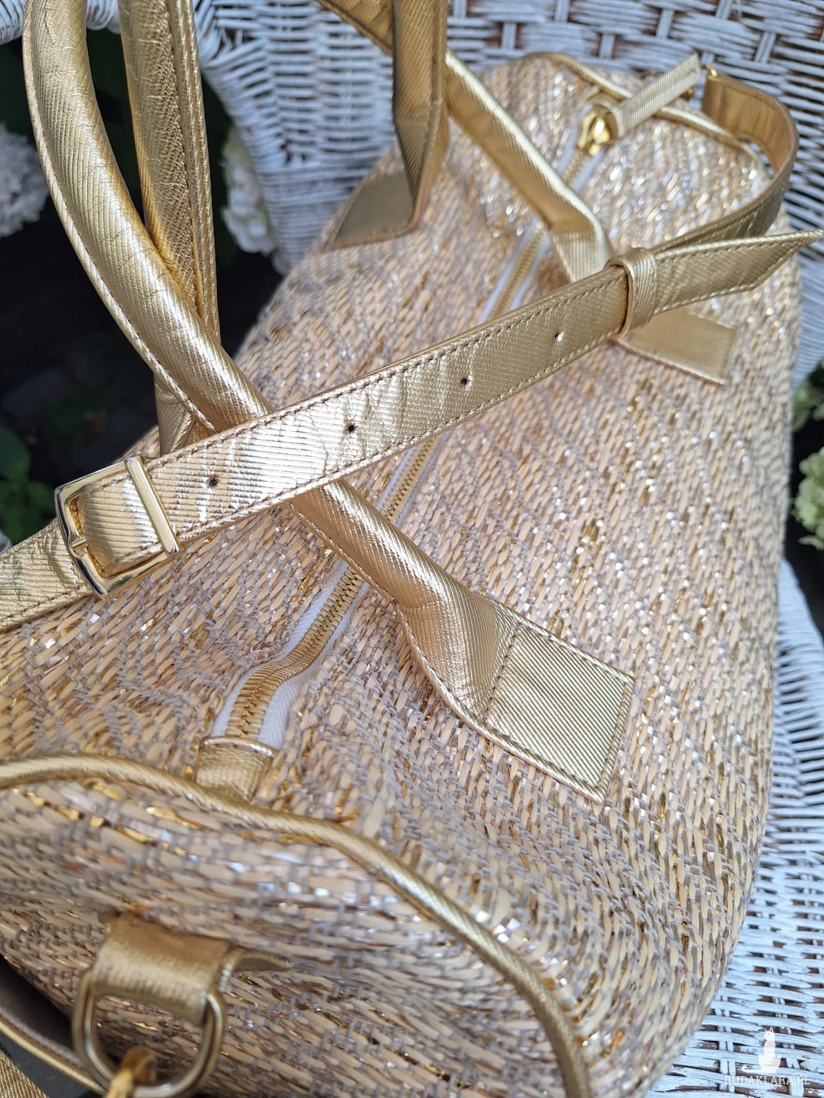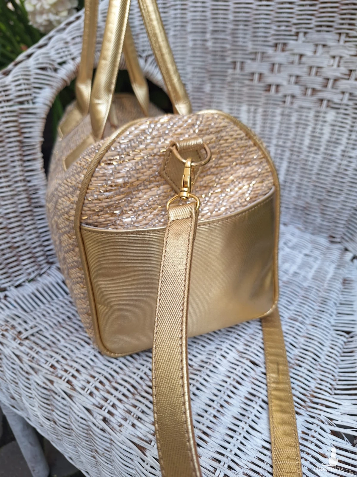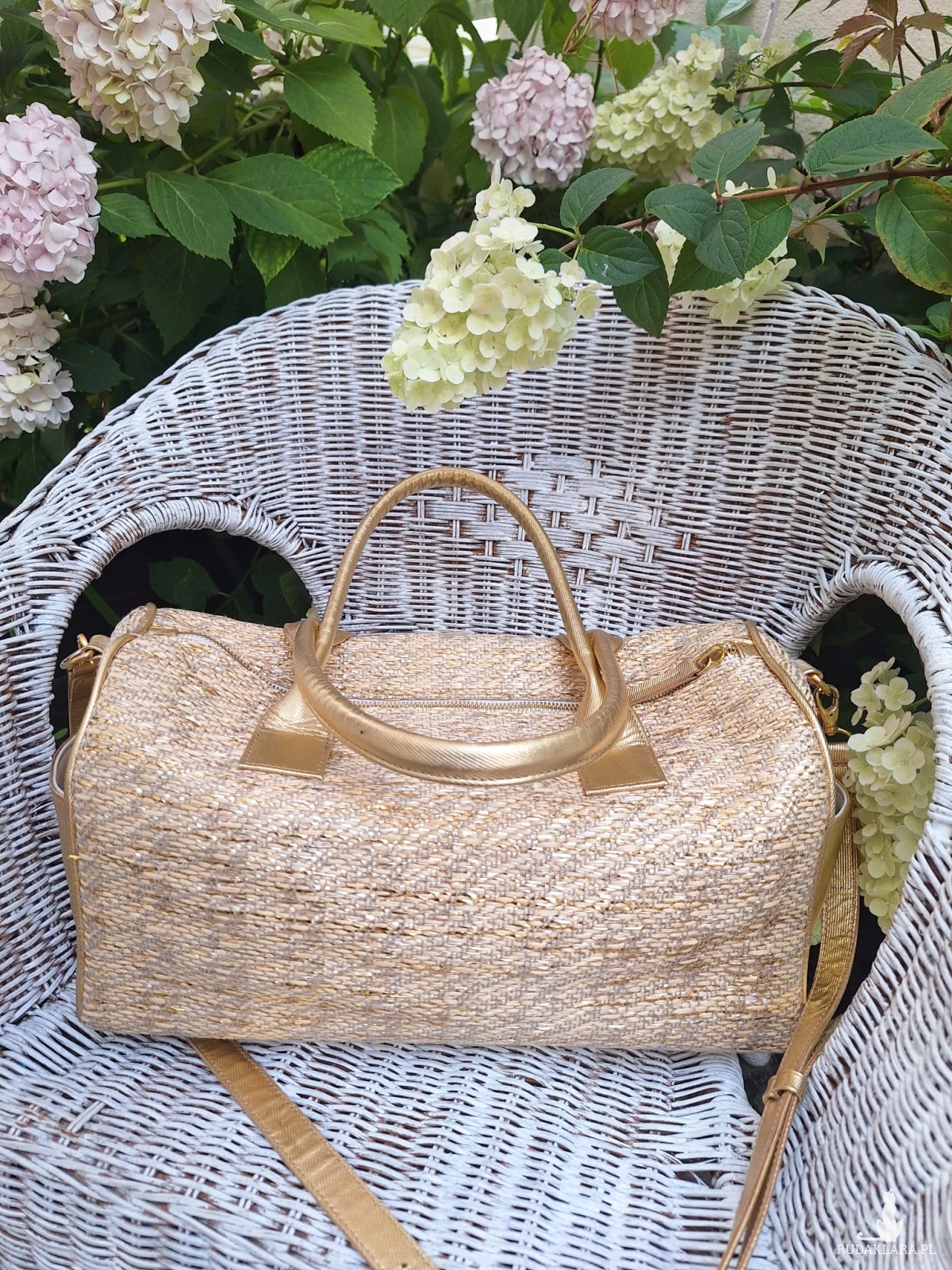UNIKATOWA torba - wyjątkowy mix plecionki - słomka i złota folia oraz pięknej złotej koziej skóry fakturowanej w paseczki.
