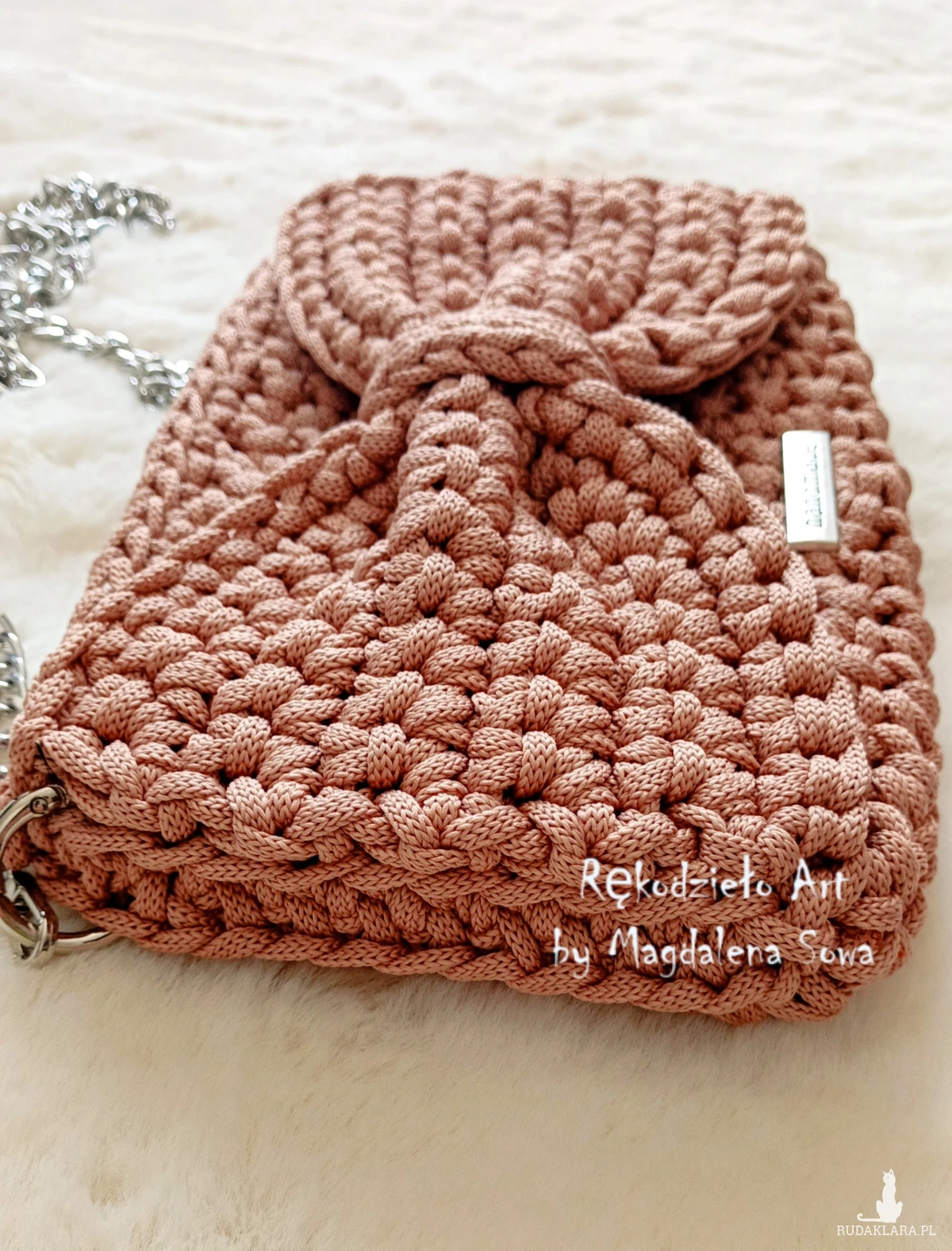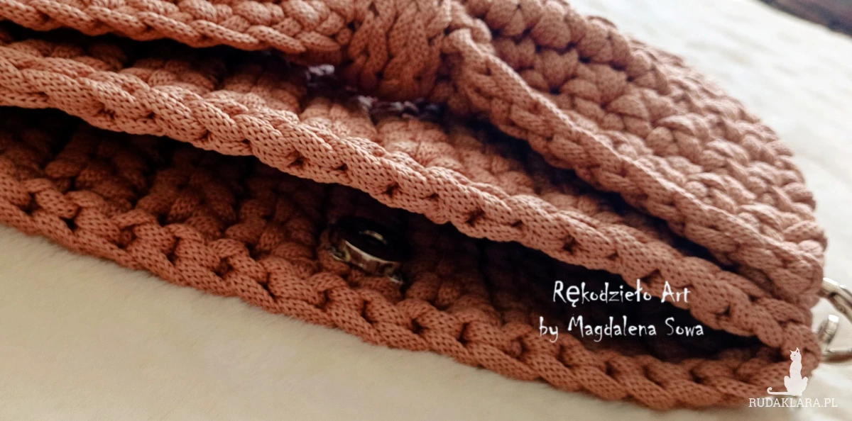 Torebka wykonana jest ze sznurka poliestrowego 5mm polskiego producenta, zapinana na zapięcie magnetyczne.