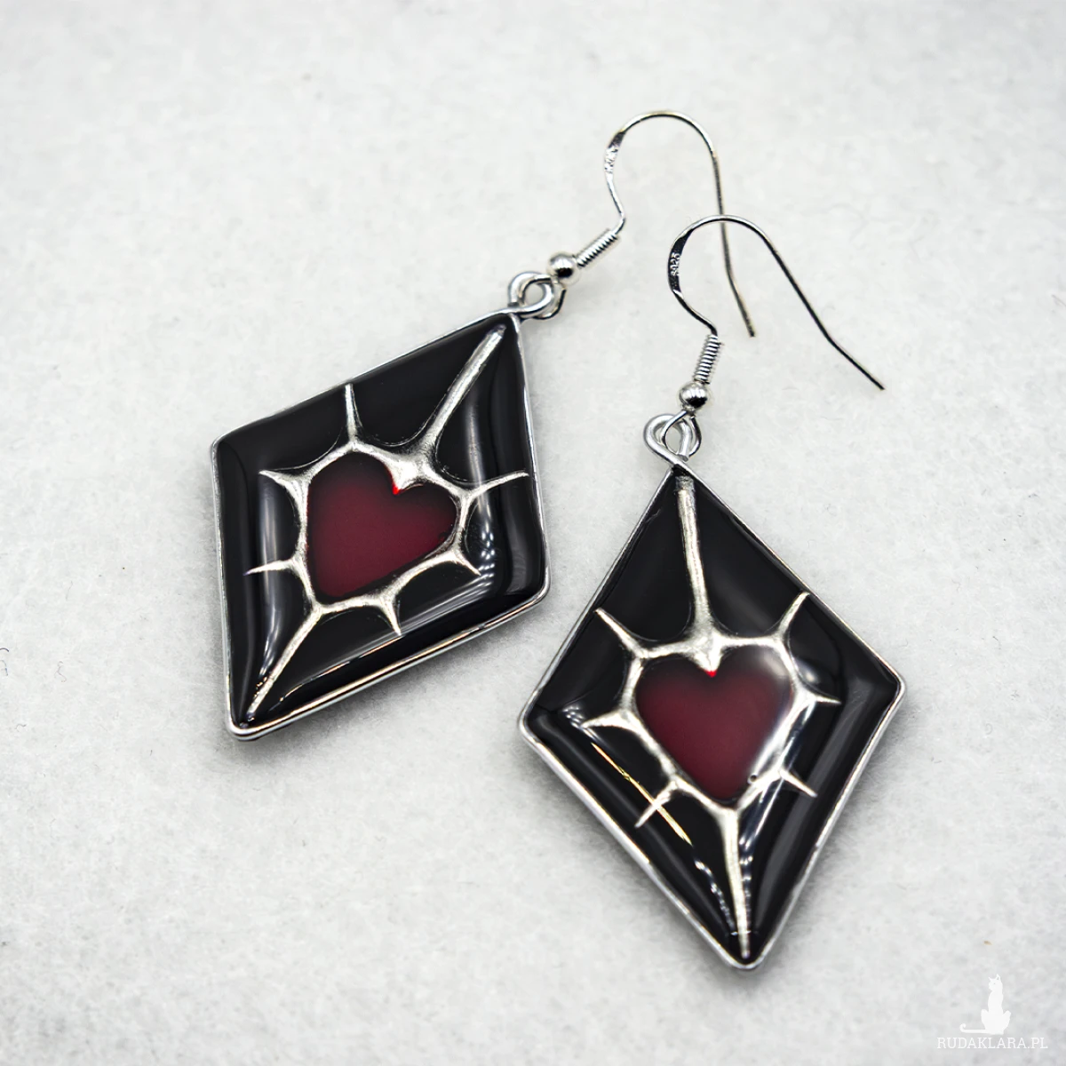 wykonane przeze mnie unikalne kolczyki w klasycznym gotyckim stylu z sercem dla wszystkich fanów "czarnej sceny". Należę do niej od blisko 30 lat i dlatego tworzę biżuterię, która może wydawać się mniej "gotycka" niż inne wzory, tzn. mniej wizualnie wybujała, ale skierowana jest przede wszystkim do tych, którzy cenią sobie subtelność bez utraty podstawowych gotyckich cech.
