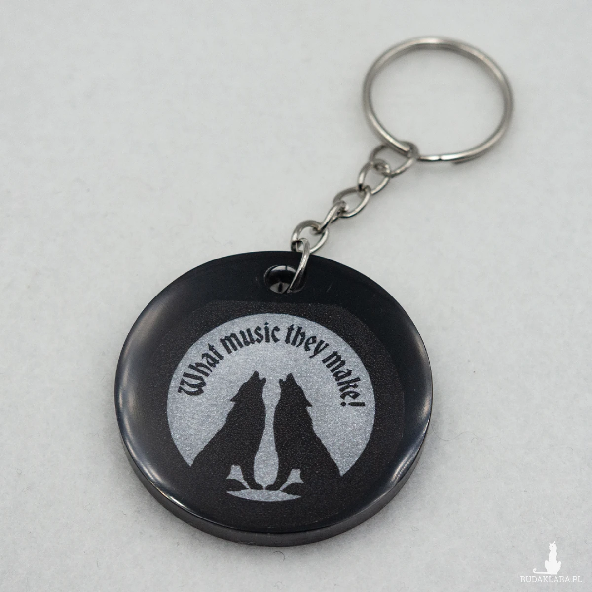 Oryginalny, ręcznie wykonany brelok z wilkami z serii "Literatura