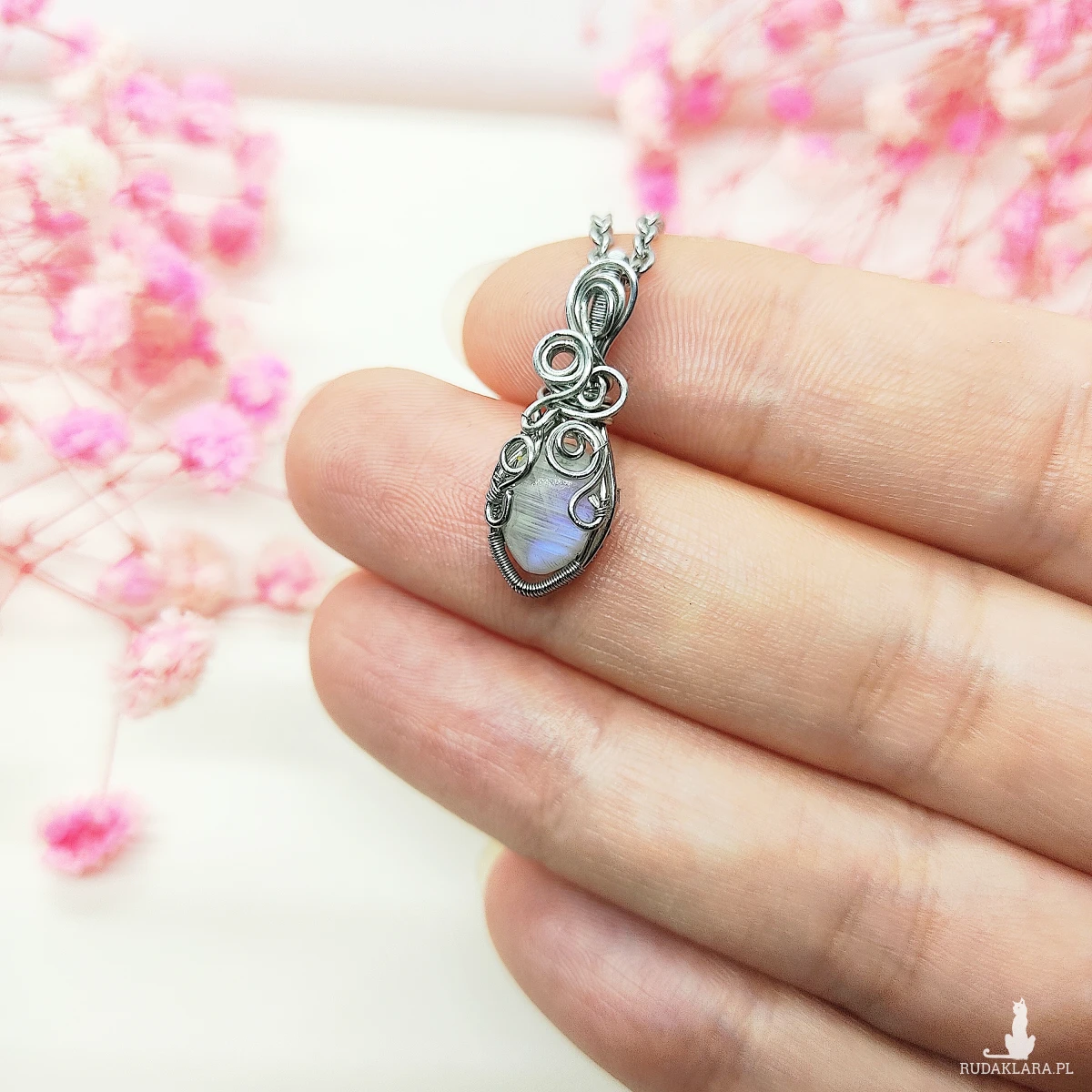Naszyjnik z kamieniem księżycowym wykonany metodą wire wrapping to wyjątkowa biżuteria, która łączy elegancję z mistycznym urokiem kamieni naturalnych. Kamień księżycowy od wieków jest ceniony za swoje właściwości i niezwykłą opalizującą poświatę, która zmienia się w zależności od kąta padania światła. Biżuteria z tym minerałem jest nie tylko piękną ozdobą, ale to także amulet wspierający intuicję, harmonię i wewnętrzny spokój.